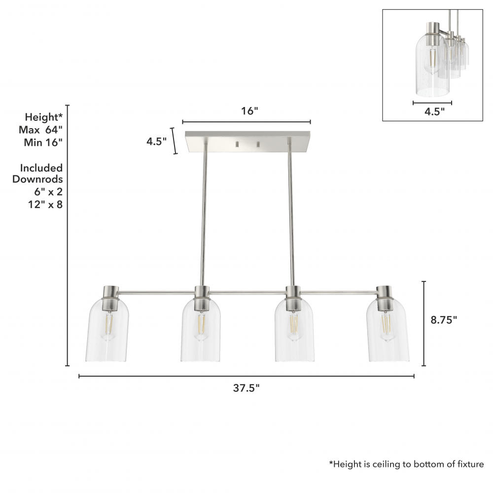 Requires 4 E26 bulbs. Bulbs not included.
