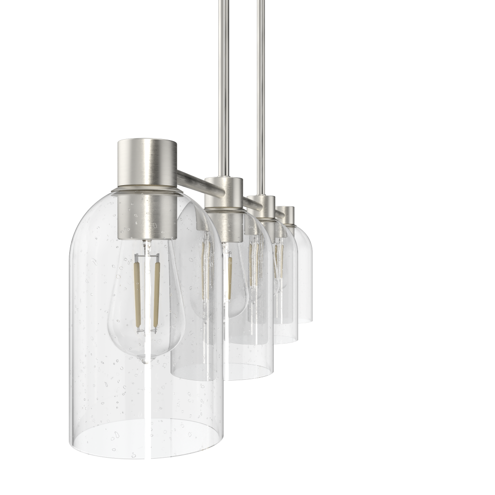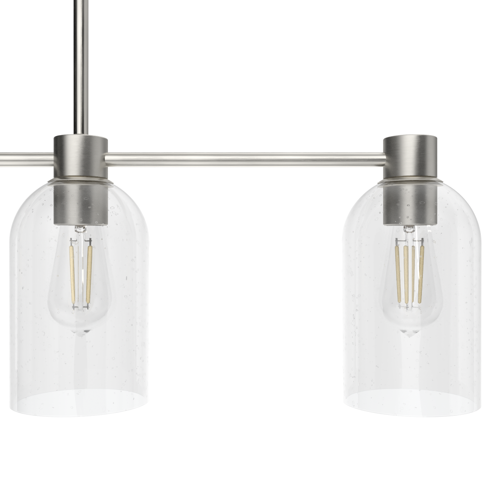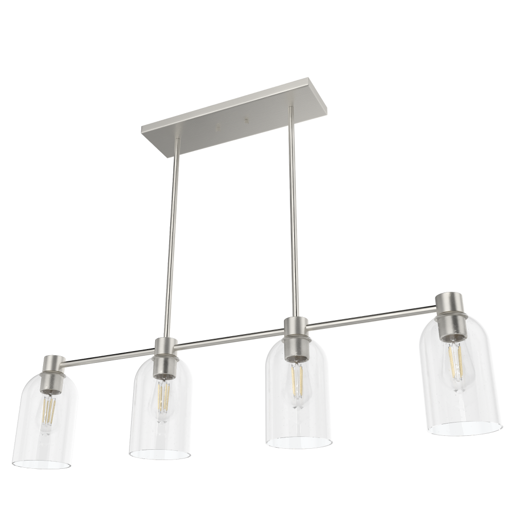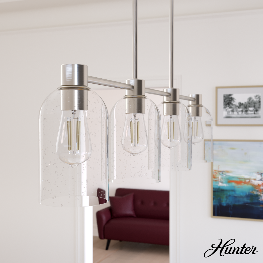 The Lochemeade linear chandelier blends simplicity with strength for a strikingly beautiful design. The modern chandelier’s strong lines and four glass dome shades embrace minimalist design. Use the Lochemeade linear chandelier with other fixtures from the collection to create a cohesive look in your home. Mix and match with fans from our ceiling fan collections to fully finish your space.