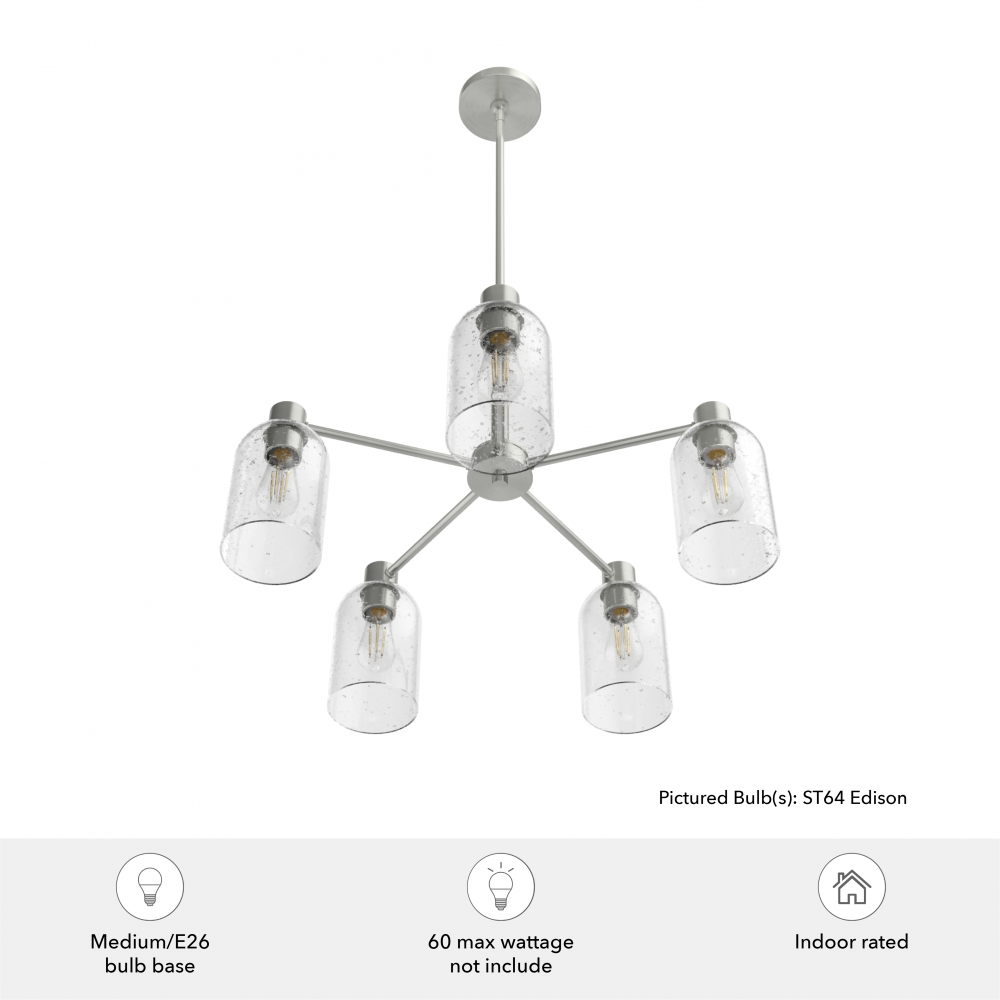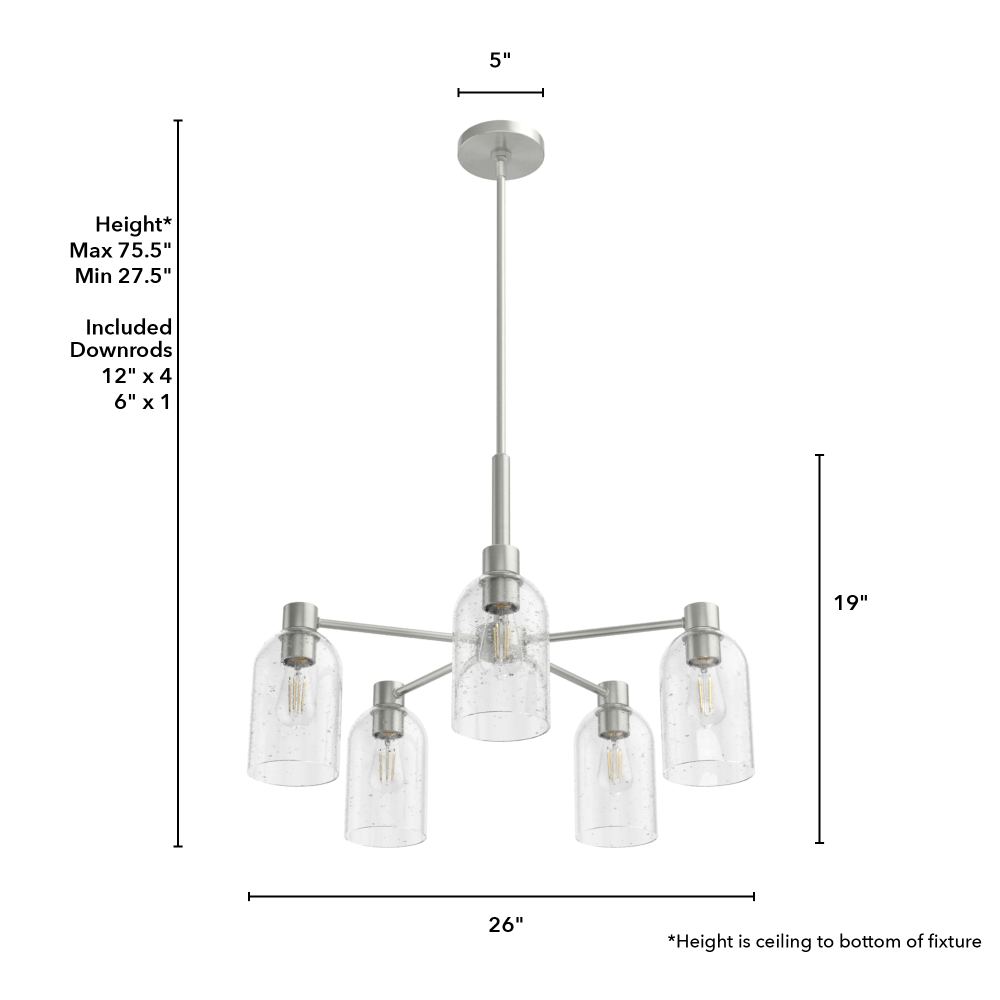 Simple yet magnificent, the Lochemeade 5-light chandelier features clear glass dome shades that leave an impression without being overpowering. Its minimalist design makes this modern chandelier versatile and able to enhance a variety of style spaces.