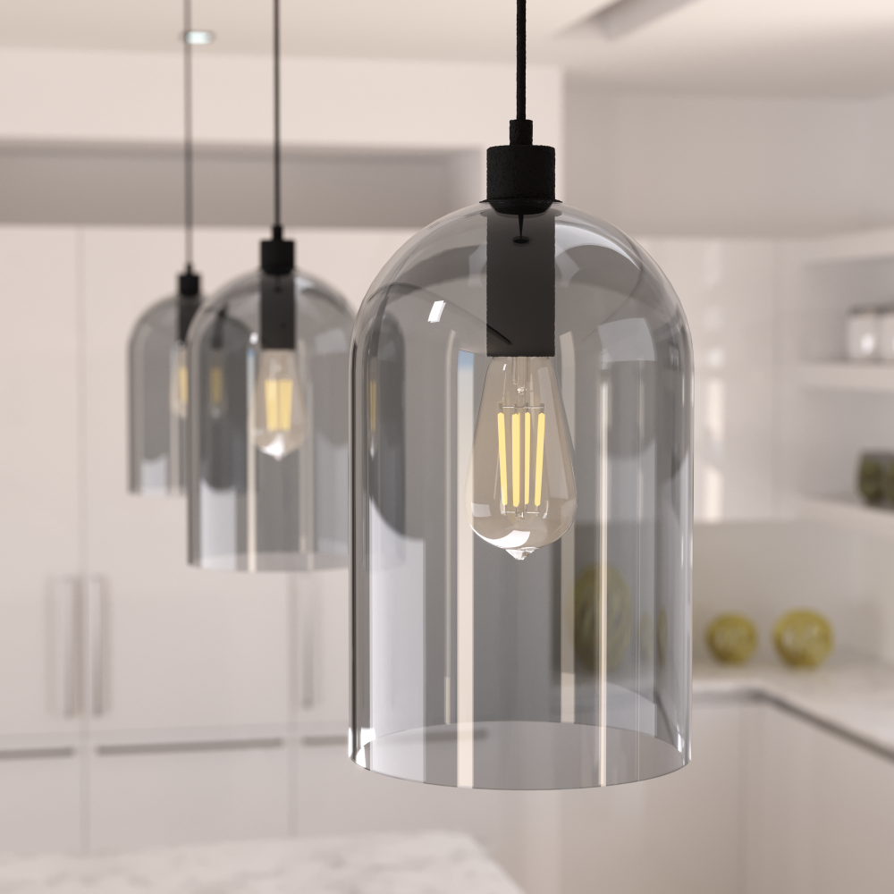 Simple and streamlined, the Lochemeade modern pendant features clear glass dome shades that leave an impression without being overpowering. The variety of available glass shade finishes – like clear seeded glass and smoked glass – gives this modern pendant light versatility in your space’s style. Mix and match with other fixtures from this collection or from our ceiling fan designs.