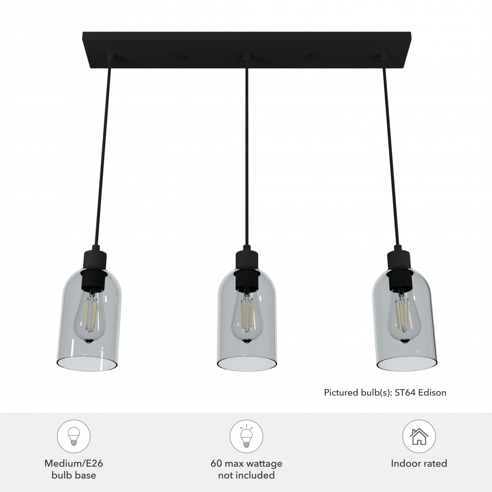 Requires 3 E26 bulbs. Bulbs not included.