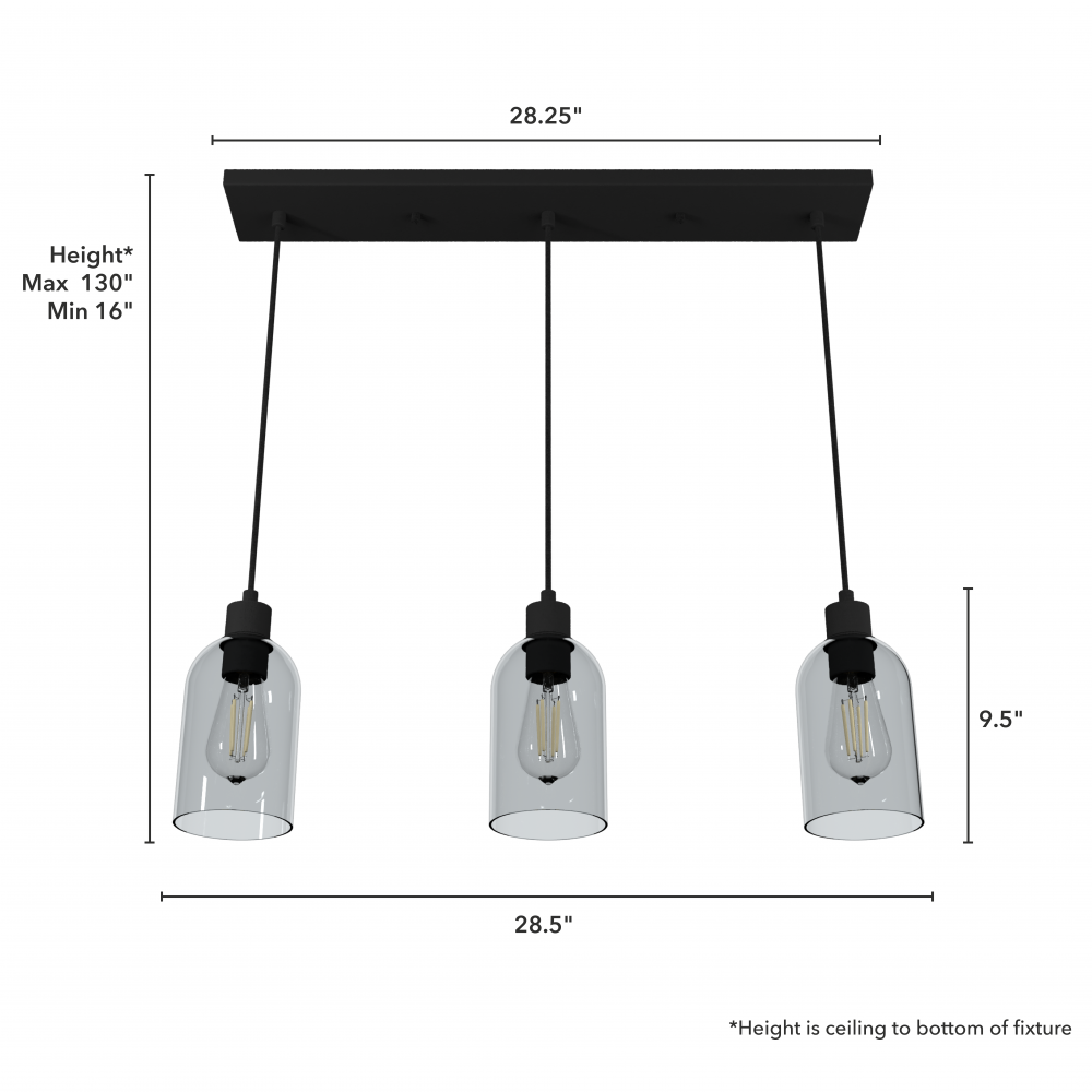 Ultimate lighting for multi-functional spaces. The Lochmeade linear cluster light gives you three modern pendant lights with one installation, perfect for spaces like kitchen islands where cooking and homeworking is being done. Like a classic black dress, its minimalist design is versatile yet statement-making. Mix and match with other fixtures from the Lochmeade collection or from our ceiling fan designs.