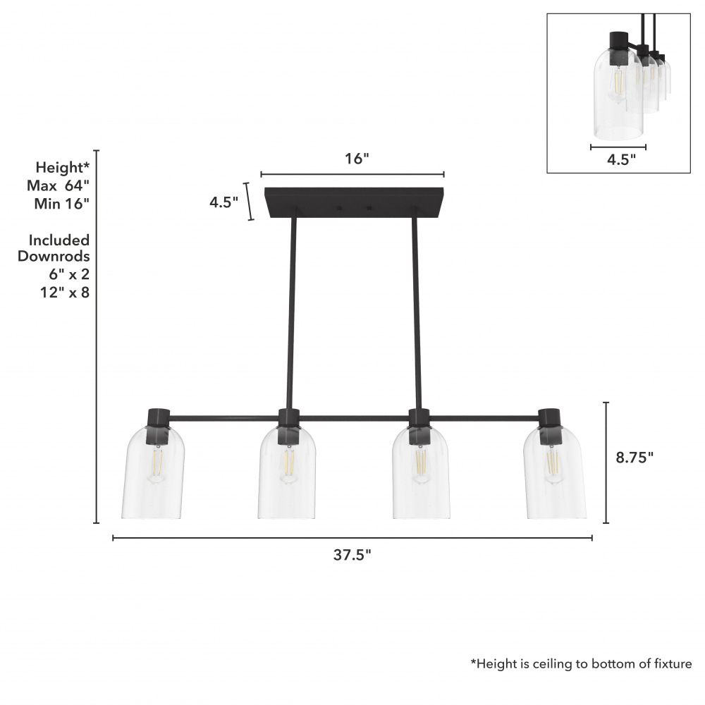Requires 4 E26 bulbs. Bulbs not included.