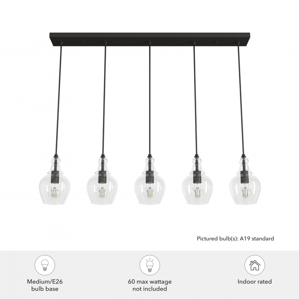 Illuminate your island or keep dinner conversations lit with the Maple Park linear cluster. Designed to evoke a farmhouse feel while seamlessly complementing a more modern aesthetic, this Maple Park fixture features five teardrop lights that bring the warmth closer to the action. Use vintage bulbs to round out the collection’s nod to the new traditional style. Mix and match with other fixtures from this collection or from our ceiling fan designs.