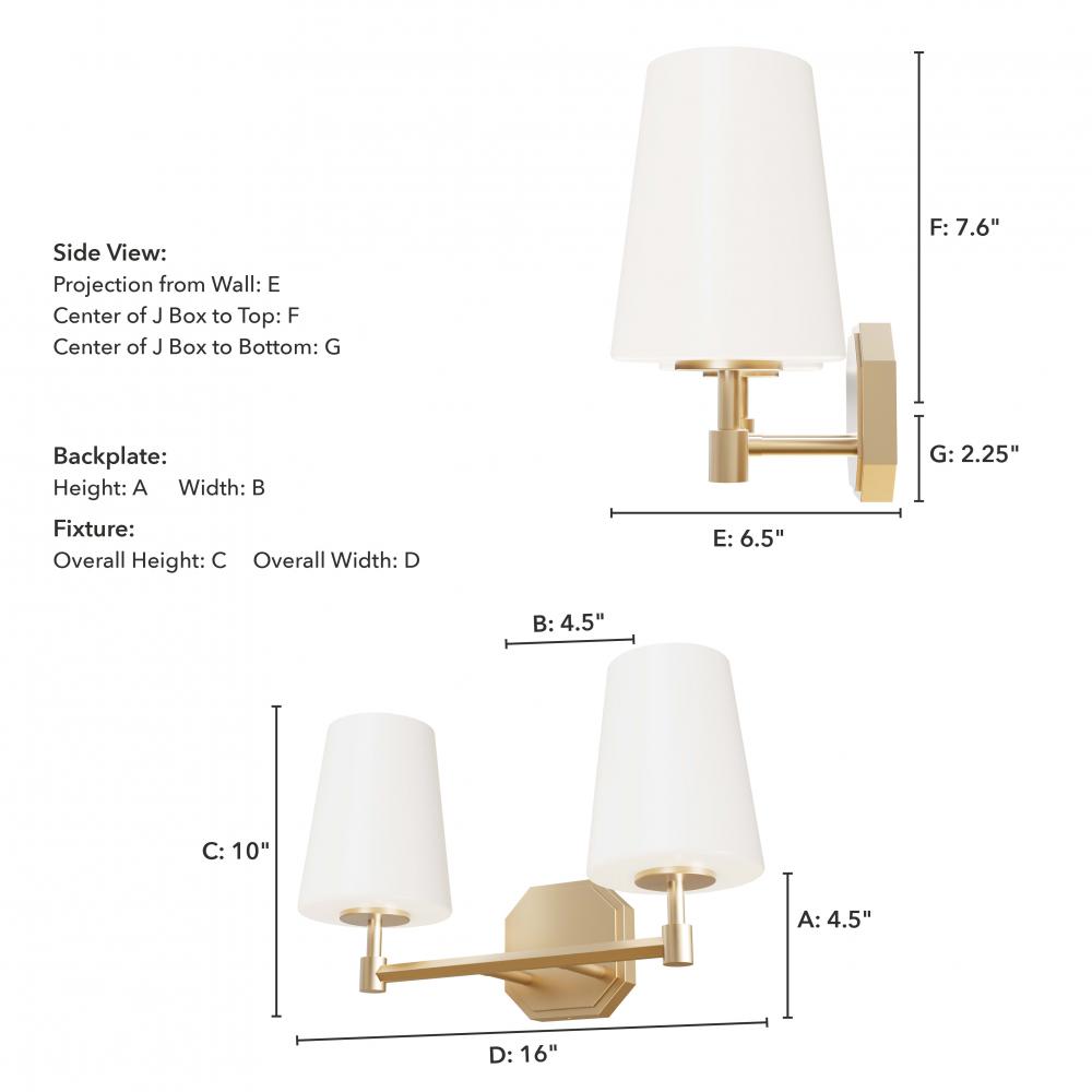 Hunter Nolita Alturas Gold with Cased White Glass 2 Light Bathroom Vanity Wall Light Fixture