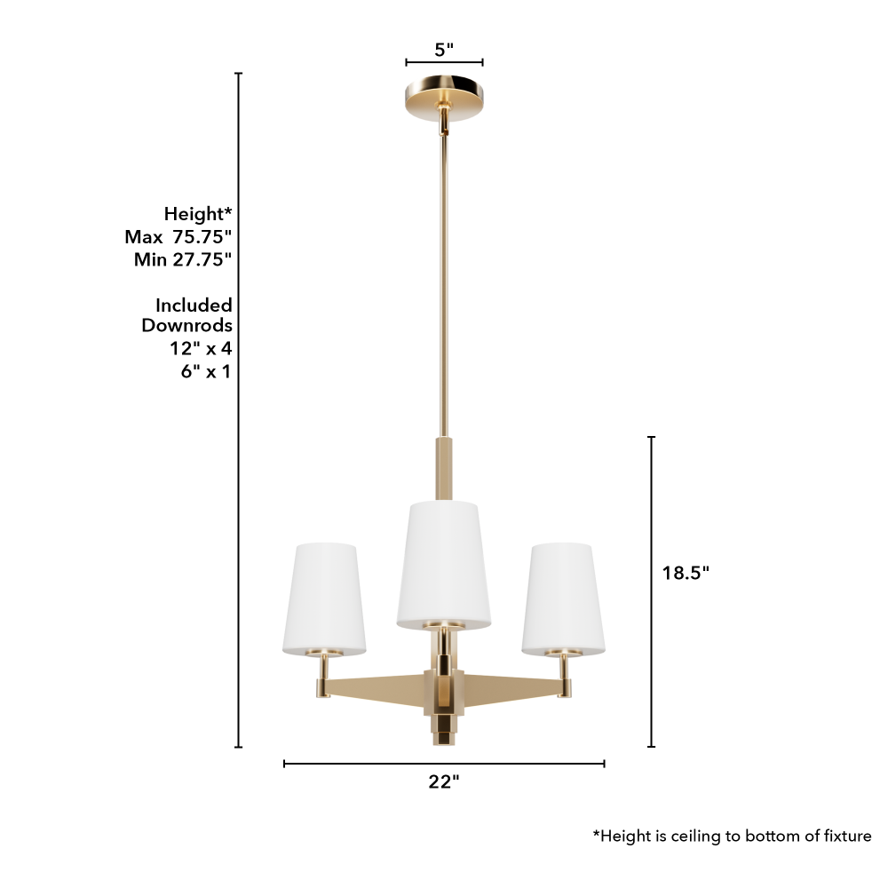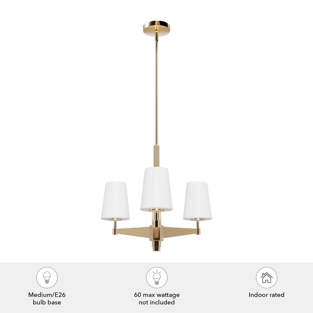 Hunter Nolita Alturas Gold with Cased White Glass 3 Light Chandelier Ceiling Light Fixture
