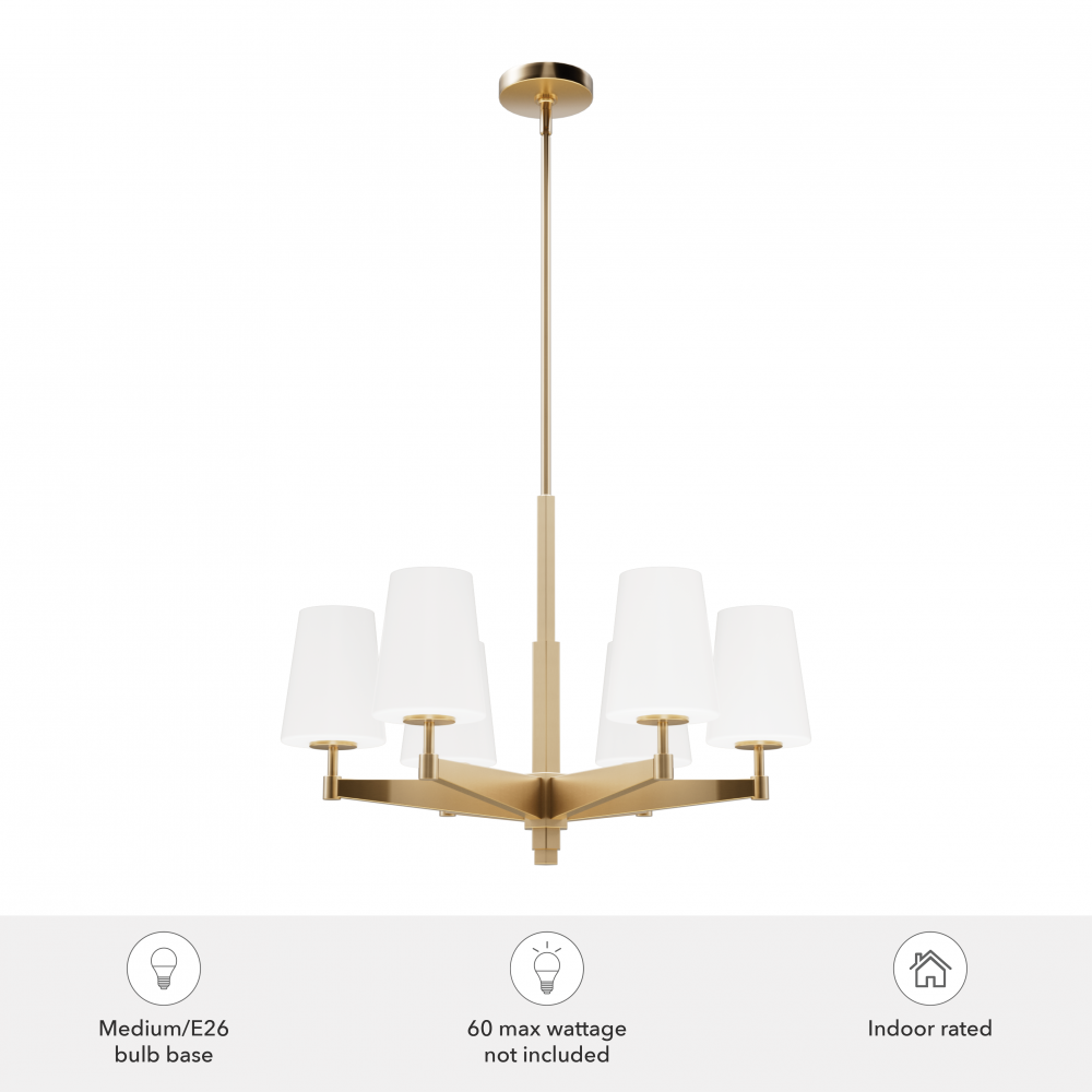 Your space exudes glamour and impeccable design, and your lighting needs to match; Enter the Nolita chandelier. This gleaming metal chandelier with glass shades will elevate your living space. The warm glow of the lights will enhance the ambiance, and the design is lovely to look at. Mix and match with other fixtures from this collection or from our ceiling fan designs.
