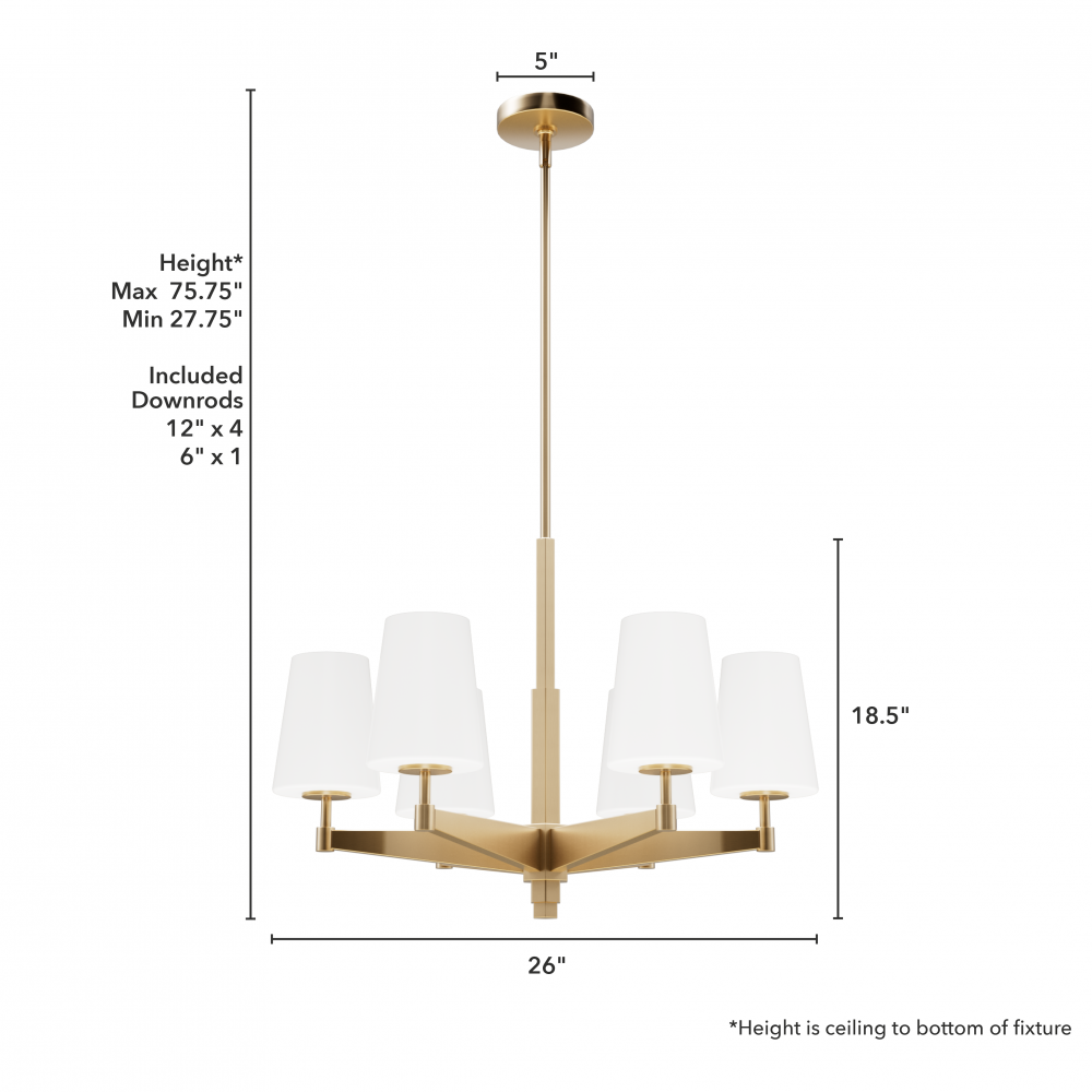 CUSTOMIZABLE HANGING OPTIONS: With the minimum required downrod, the hanging length is 27.75 inches. When using all of the included downrod, the maximum hanging length is 75.75 inches.