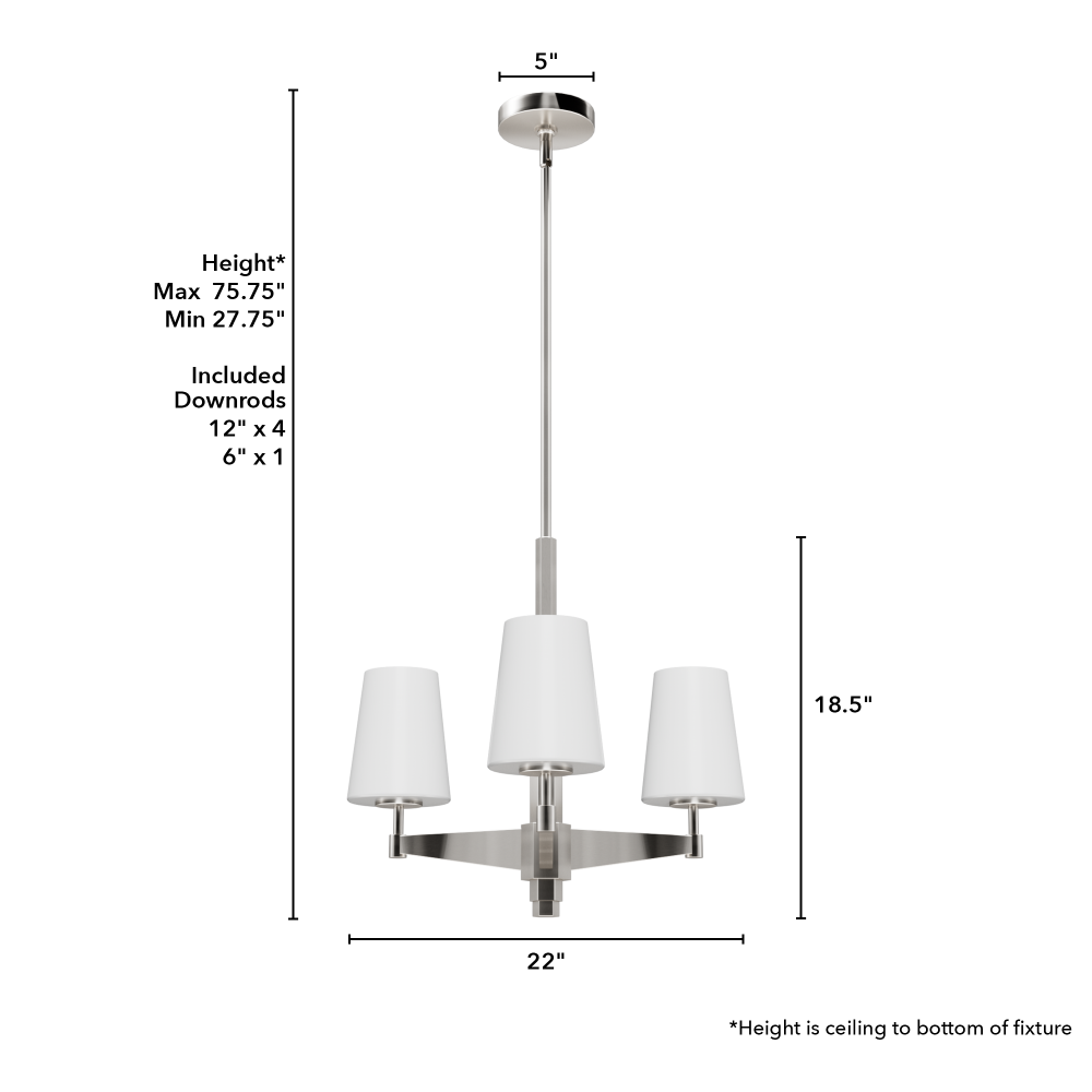 CUSTOMIZABLE HANGING OPTIONS: With the minimum required downrod, the hanging length is 27.75 inches. When using all of the included downrod, the maximum hanging length is 75.75 inches.