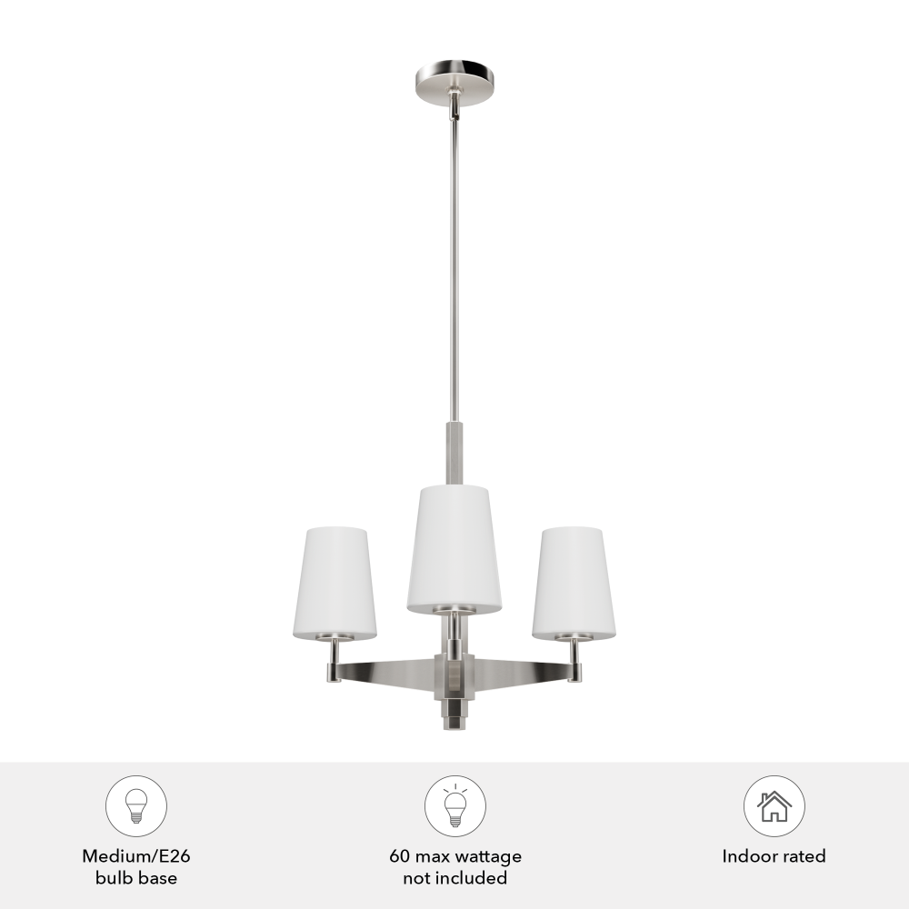 Requires 3 E26 bulbs. Bulbs not included.