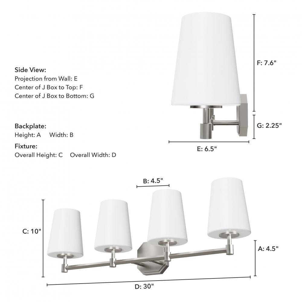 Hunter Nolita Brushed Nickel with Cased White Glass 4 Light Bathroom Vanity Wall Light Fixture