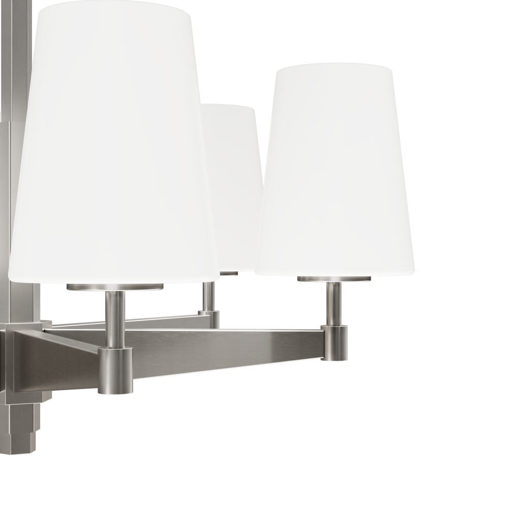 Your space exudes glamour and impeccable design, and your lighting needs to match; Enter the Nolita chandelier. This gleaming metal chandelier with glass shades will elevate your living space. The warm glow of the lights will enhance the ambiance, and the design is lovely to look at. Mix and match with other fixtures from this collection or from our ceiling fan designs.