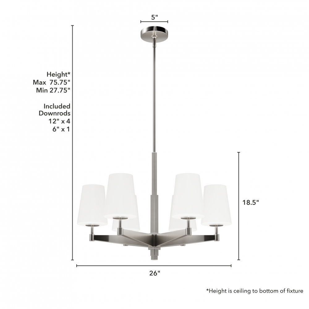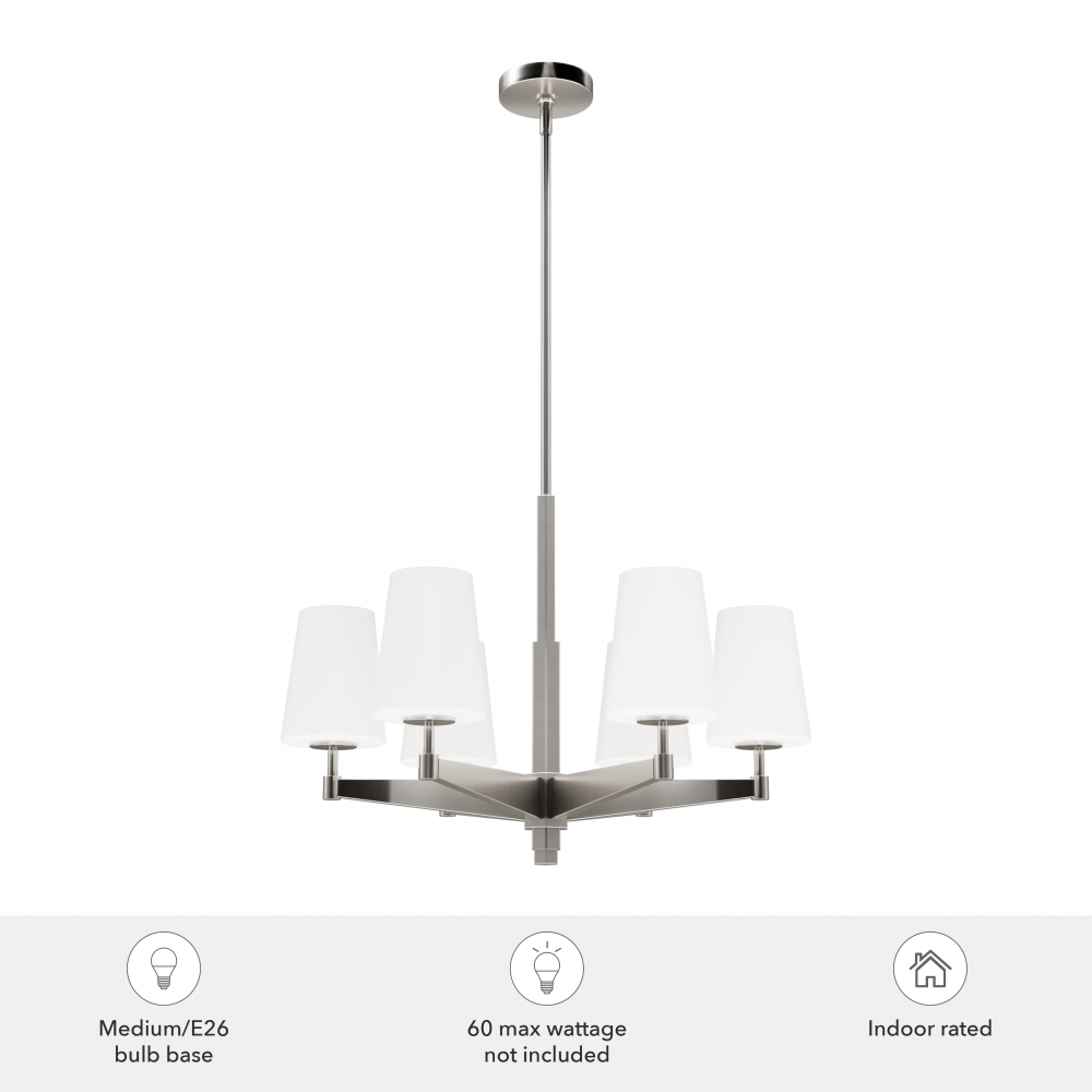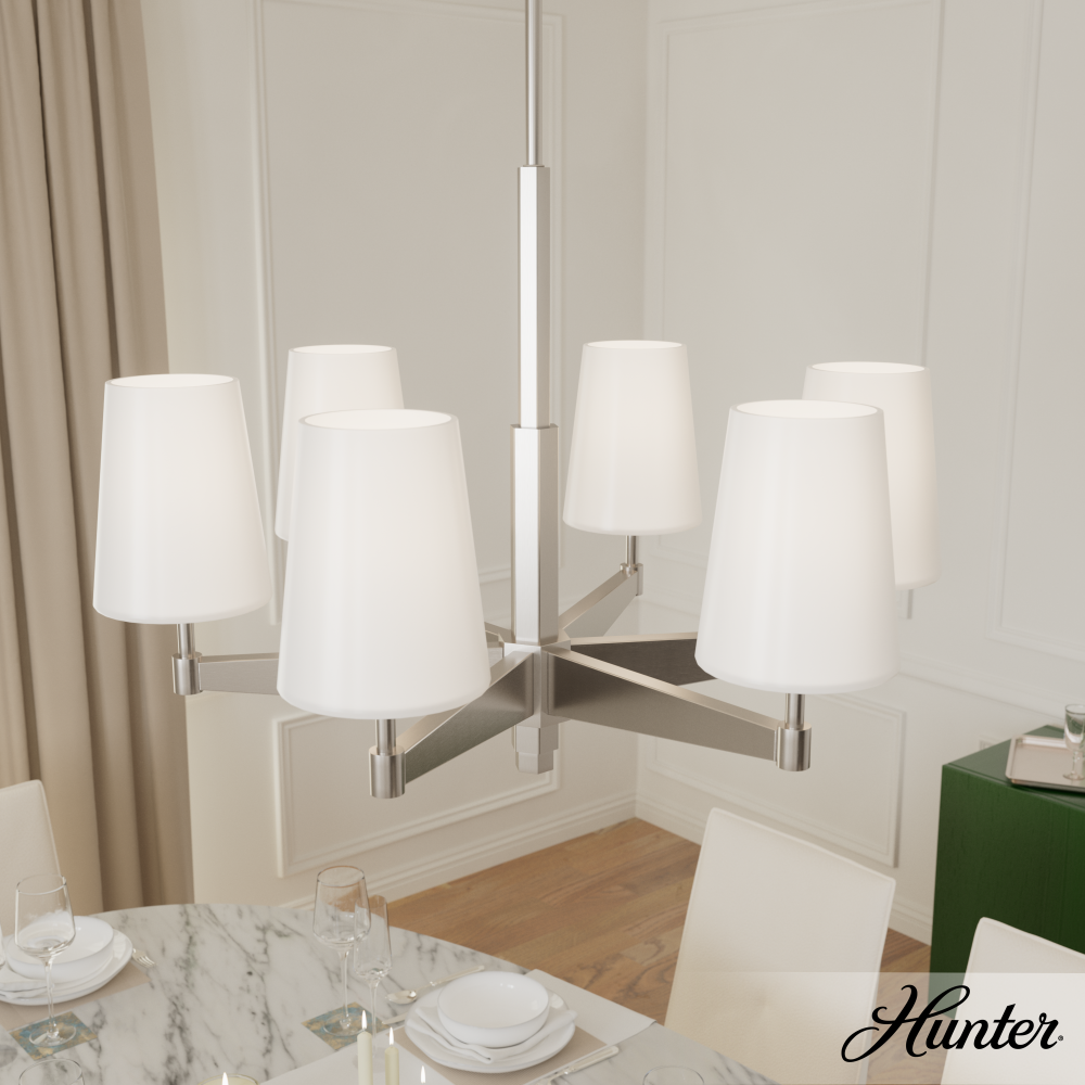 Hunter Nolita Brushed Nickel with Cased White Glass 6 Light Chandelier Ceiling Light Fixture