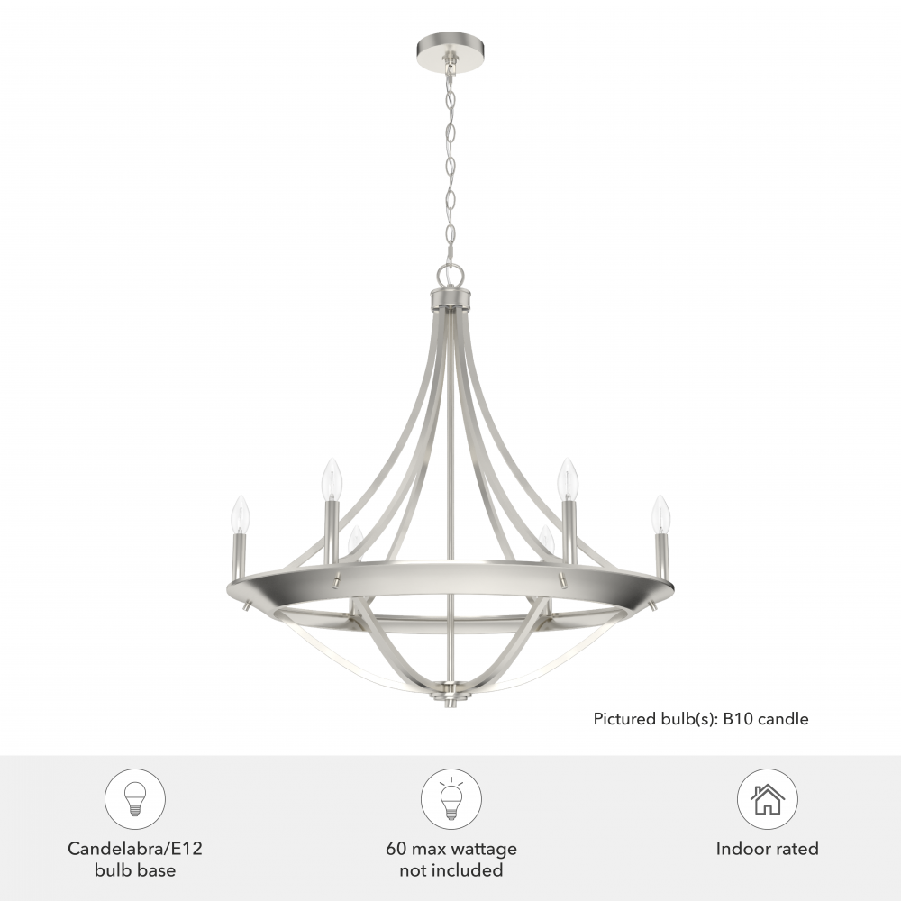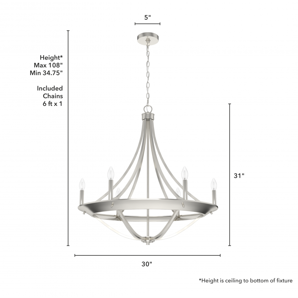 Hunter Perch Point Brushed Nickel 6 Light Large Chandelier Ceiling Light Fixture