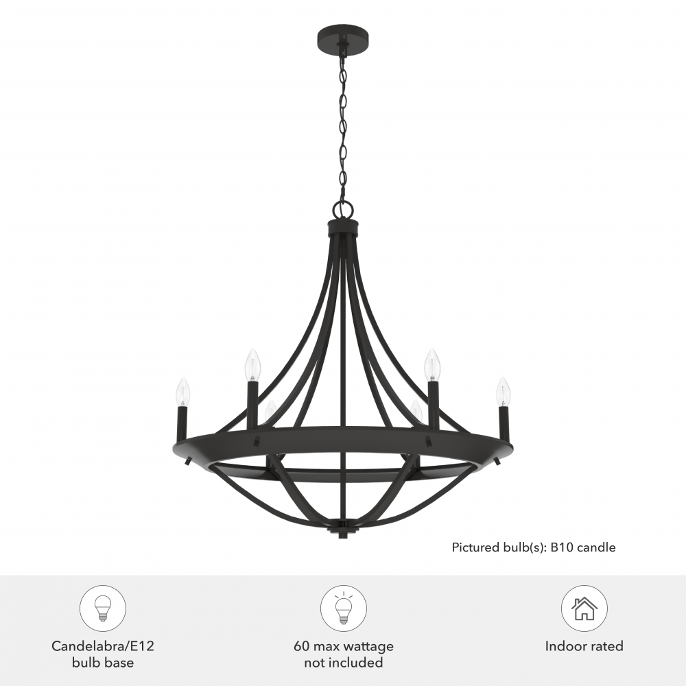 Be transported to a mountain resort with the Perch Point chandelier. The elegant curve of the metal into a basket shape will feature glowing candle-like lights that will make you feel like you're on vacation every time you turn it on. Add sconces and other fixtures from the Perch Point collection for a truly modern and rustic feeling throughout your home.