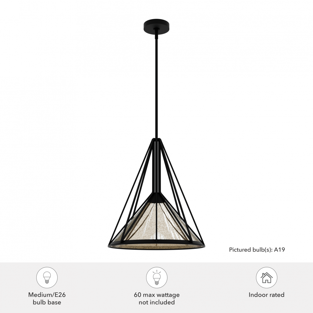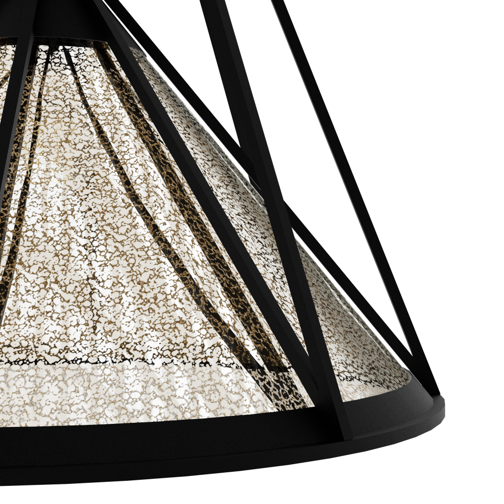 The Rafner large pendant leaves no doubt that your style is cutting edge. This fixture demands attention with its mercury glass held as if suspended in place by sleek metal bands forming a conical shape. Hang more than one fixture from the Rafner collection for a truly dramatic effect. Mix and match with fans from our ceiling fan collections to fully finish your space.