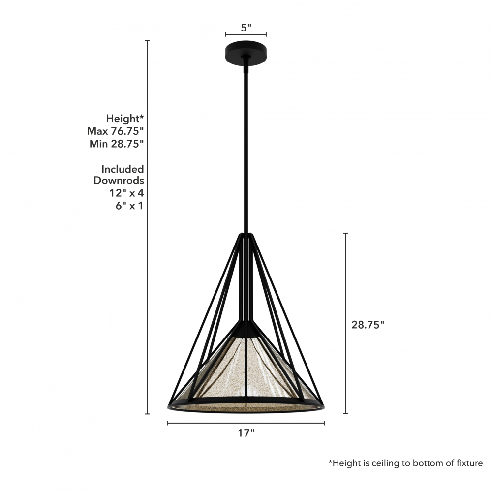 CUSTOMIZABLE HANGING OPTIONS: With the minimum required downrod, the hanging length is 28.75 inches. When using all of the included downrod, the maximum hanging length is 76.75 inches.