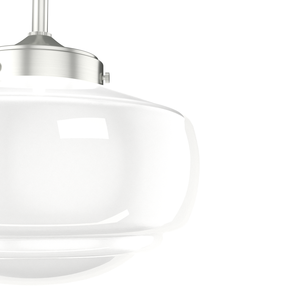 Traditional design. Elevated elements. The Saddle Creek pendant draws inspiration from the iconic American schoolhouse light but adds an updated touch with subtle detailing in the glass shade. For those who want all-in-one light fixtures, this schoolhouse-inspired pendant can also be installed as a semi-flush mount lighting. Mix and match with other fixtures from this collection or from our ceiling fan designs.