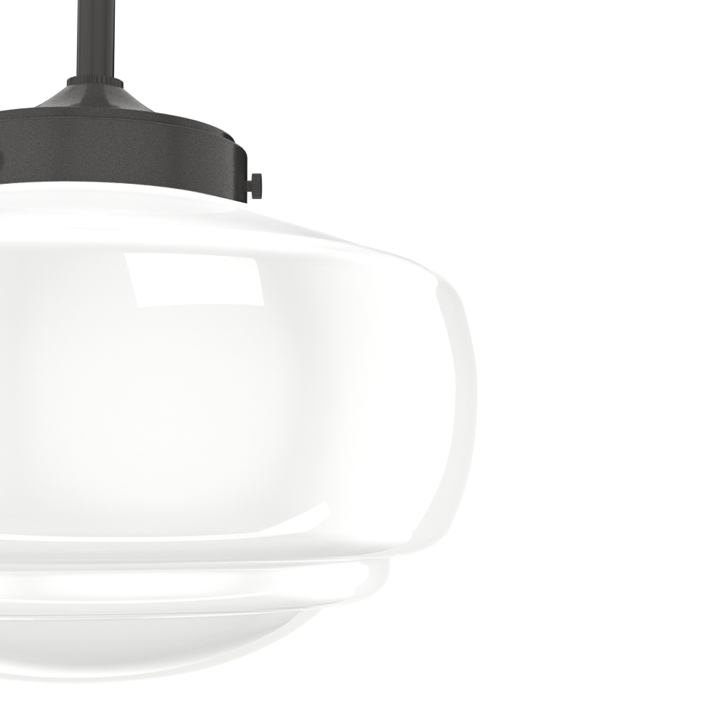 Traditional design. Elevated elements. The Saddle Creek pendant draws inspiration from the iconic American schoolhouse light but adds an updated touch with subtle detailing in the glass shade. For those who want all-in-one light fixtures, this schoolhouse-inspired pendant can also be installed as a semi-flush mount lighting. Mix and match with other fixtures from this collection or from our ceiling fan designs.