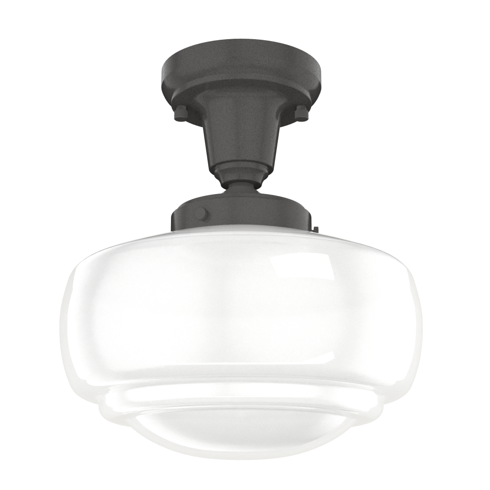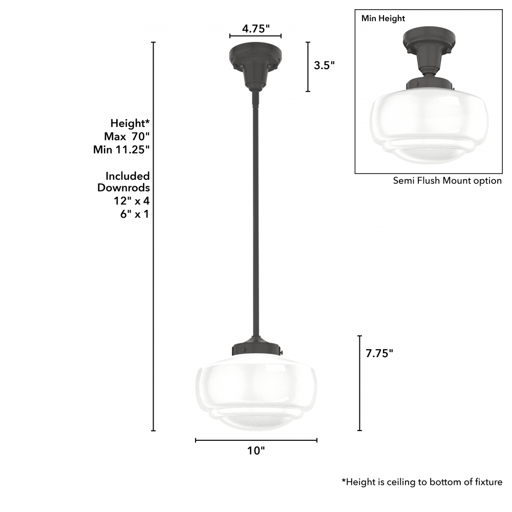 Traditional design. Elevated elements. The Saddle Creek mini pendant draws inspiration from the iconic American schoolhouse light but adds an updated touch with subtle detailing in the glass shade. For those who want all-in-one light fixtures, this schoolhouse-inspired mini pendant can also be installed as a semi-flush mount lighting.