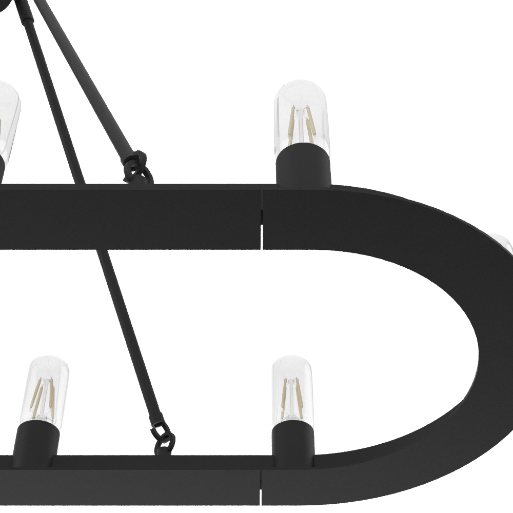The simple aesthetic of the Saddlewood 10 Light Chandelier lets you customize the look with the bulb style you choose, creating a dining room lighting look that’s uniquely yours. The oblong chandelier design makes a statement and provides ample lighting in modern industrial and farmhouse style dining rooms.