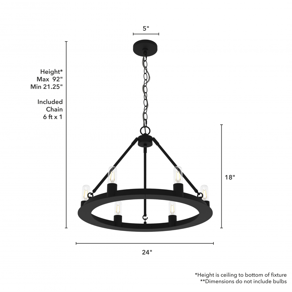 Requires 6 E26 bulbs. Bulbs not included.