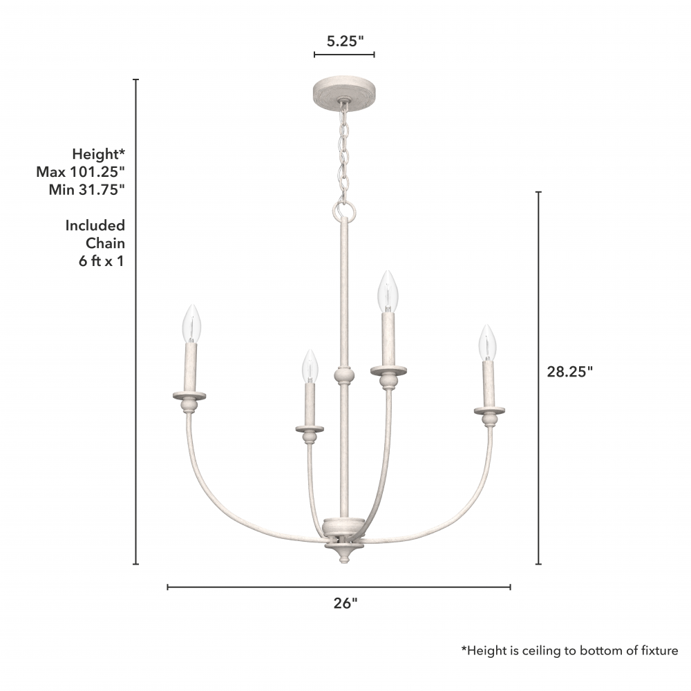 CUSTOMIZABLE HANGING OPTIONS: With the minimum required chain, the hanging length is 31.75 inches. When using all of the included chain, the maximum hanging length is 101.25 inches.