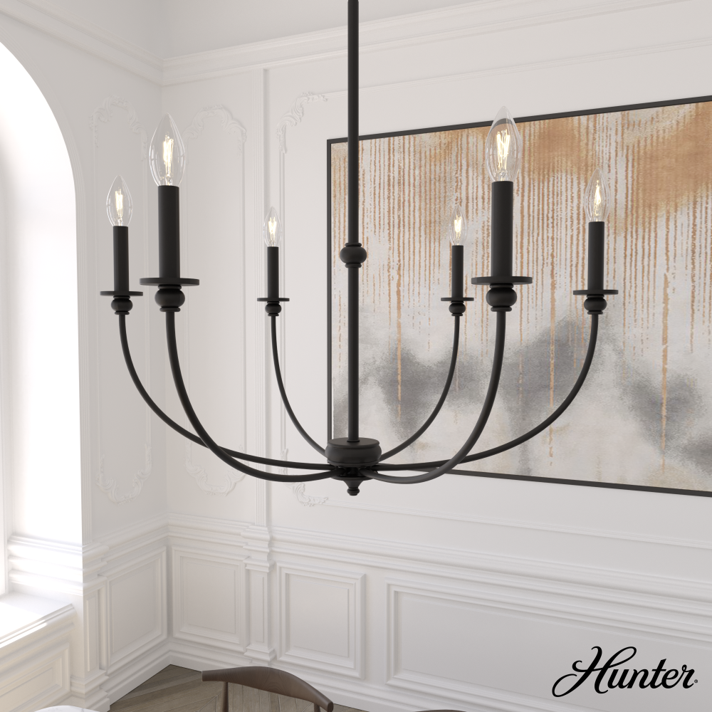 Hunter Southcrest Matte Black 6 Light Large Chandelier Ceiling Light Fixture