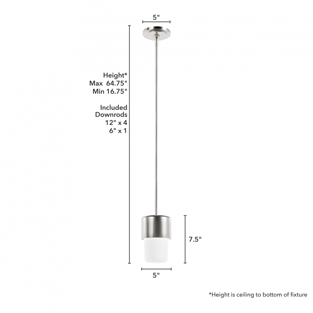 CUSTOMIZABLE HANGING OPTIONS: With the minimum required downrod, the hanging length is 16.5 inches. When using all of the included downrod, the maximum hanging length is 64.5 inches.