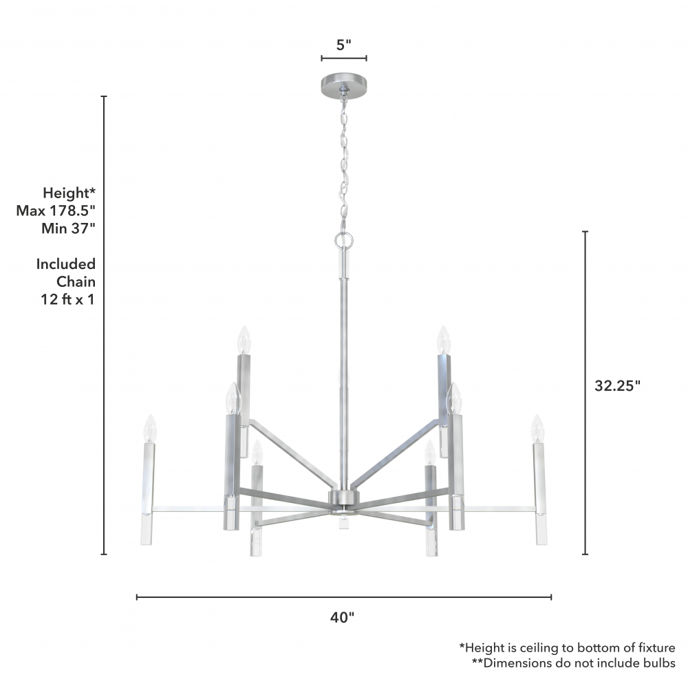 CUSTOMIZABLE HANGING OPTIONS: With the minimum required chain, the hanging length is 37 inches. When using all of the included chain, the maximum hanging length is 178.5 inches.