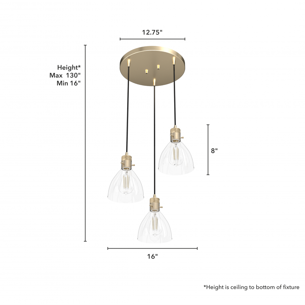 CUSTOMIZABLE HANGING OPTIONS: With the minimum required cord, the hanging length is 16 inches. When using all of the included cord, the maximum hanging length is 130 inches.