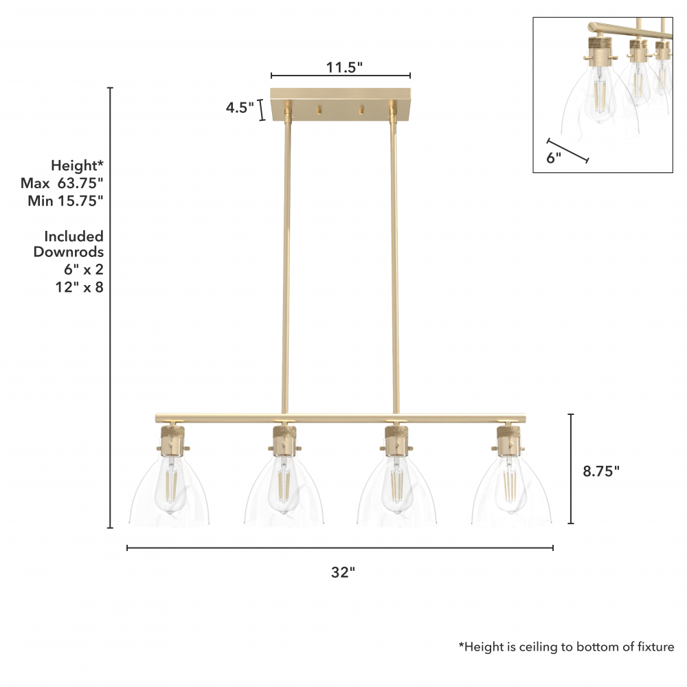 Requires 4 E26 bulbs. Bulbs not included.