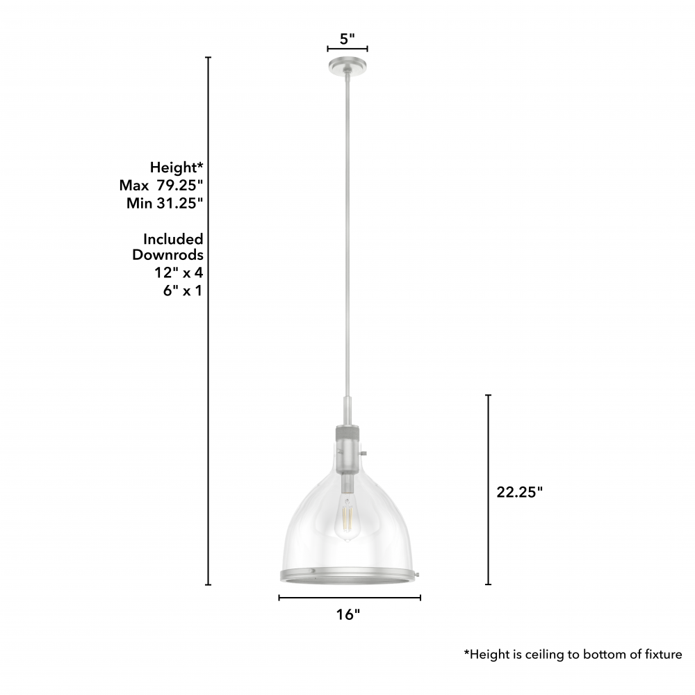 CUSTOMIZABLE HANGING OPTIONS: With the minimum required downrod, the hanging length is 31.25 inches. When using all of the included downrod, the maximum hanging length is 79.25 inches.