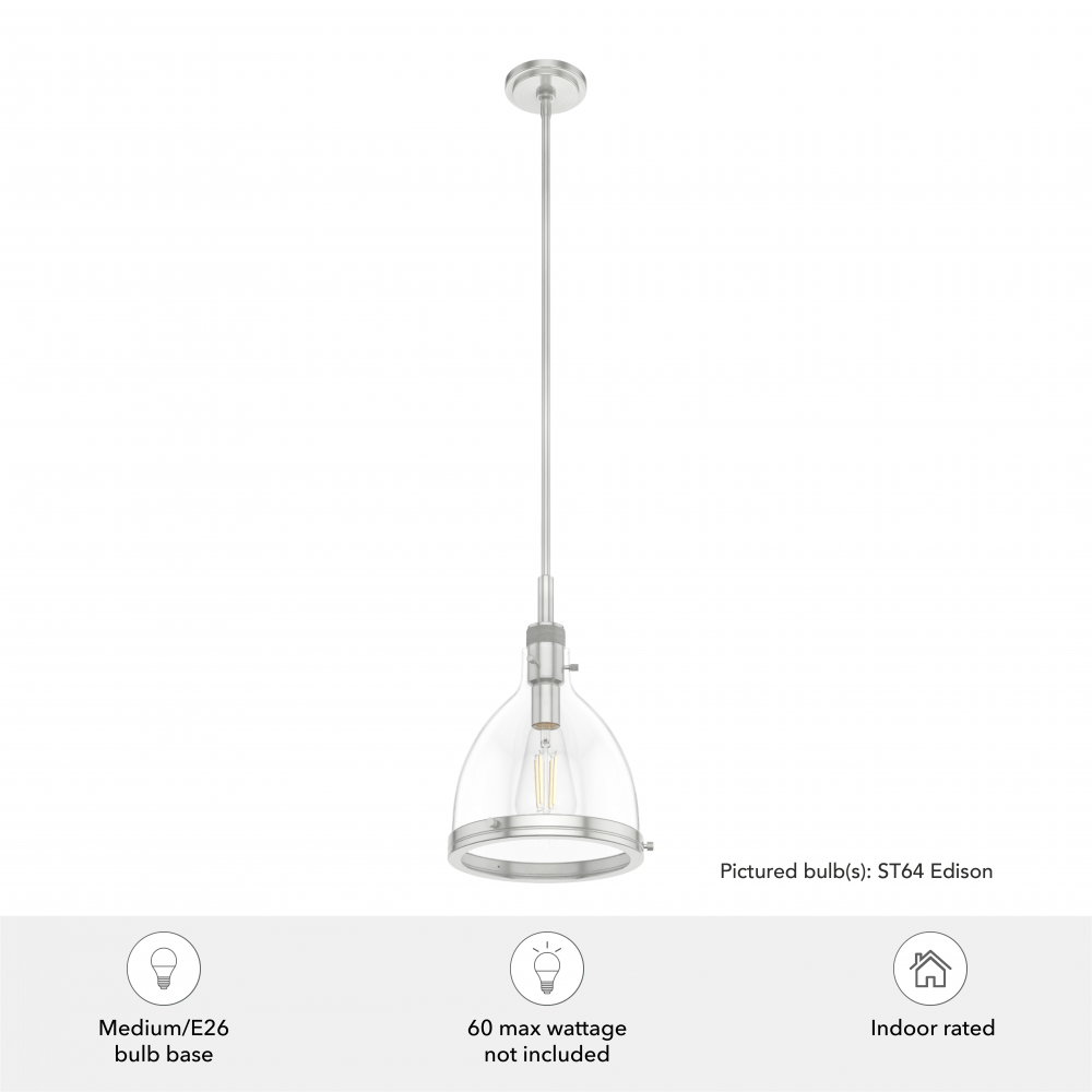 Hunter Van Nuys Brushed Nickel with Clear Glass 1 Light Pendant Ceiling Light Fixture