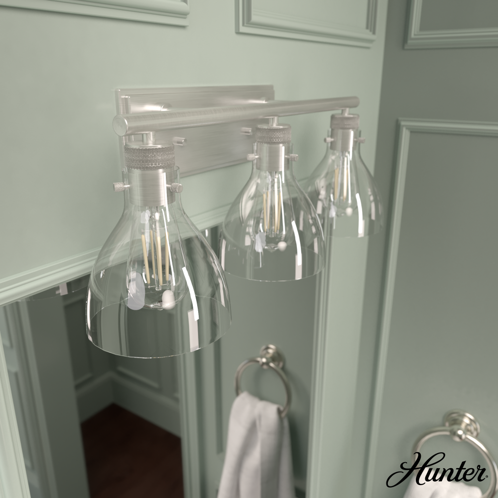 Hunter Van Nuys Brushed Nickel with Clear Glass 3 Light Bathroom Vanity Wall Light Fixture