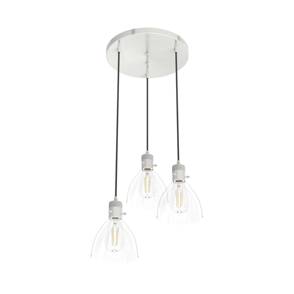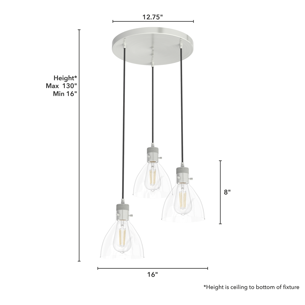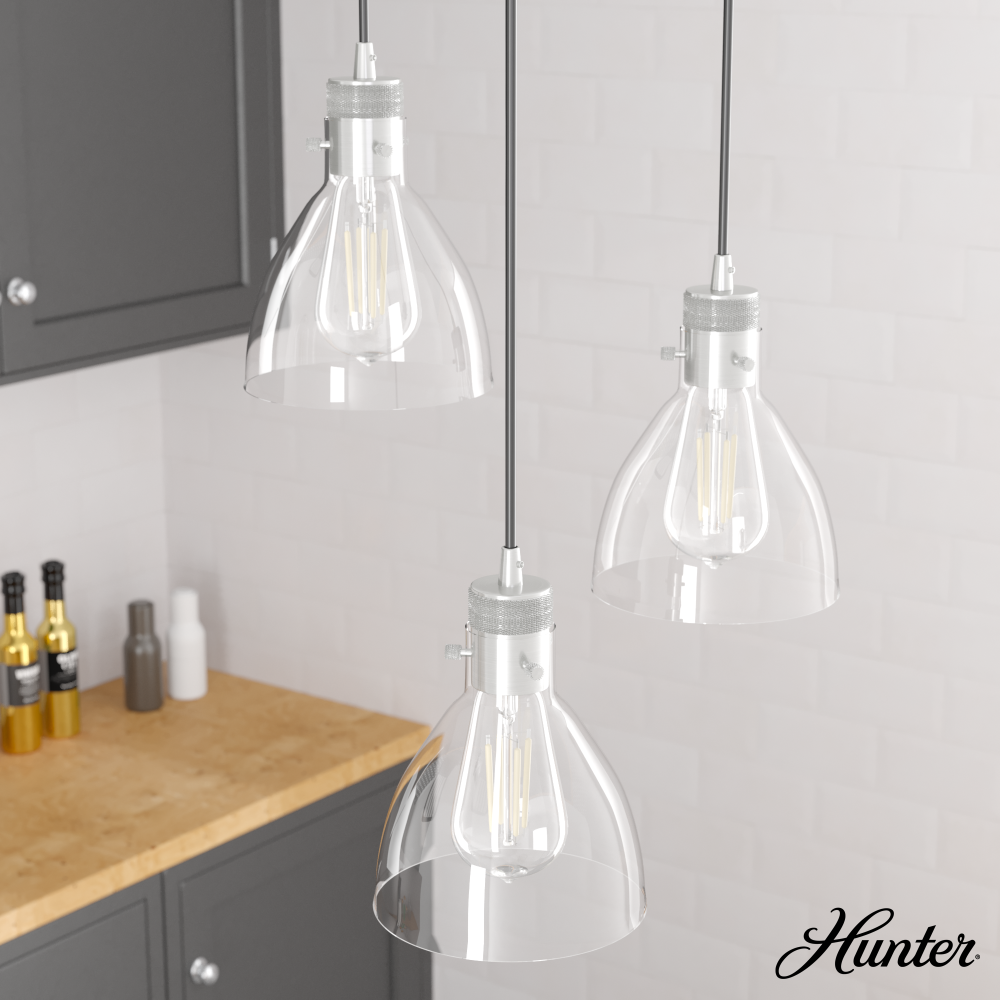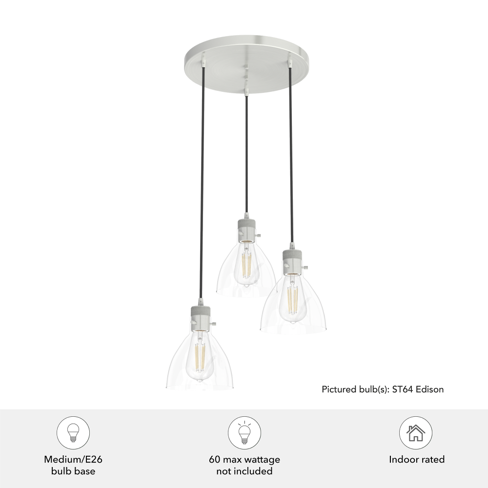 Hunter Van Nuys Brushed Nickel with Clear Glass 3 Light Pendant Cluster Ceiling Light Fixture