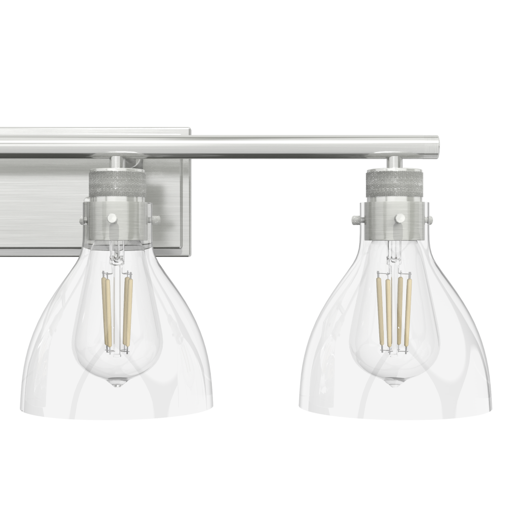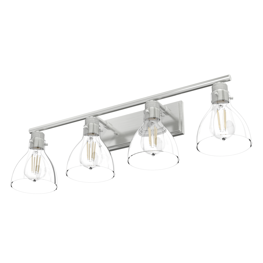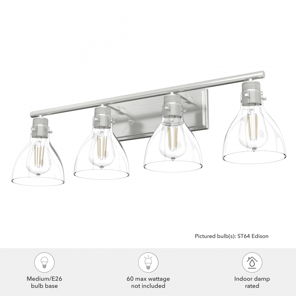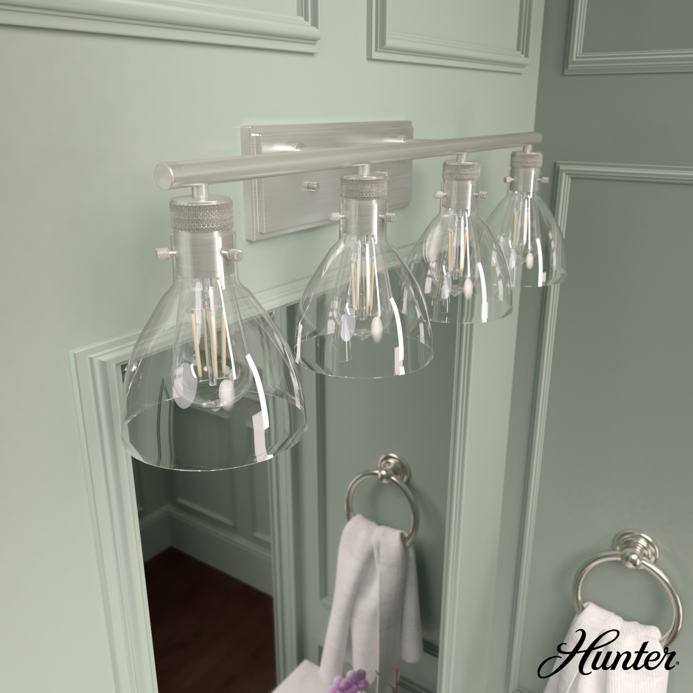 Hunter Van Nuys Brushed Nickel with Clear Glass 4 Light Bathroom Vanity Wall Light Fixture