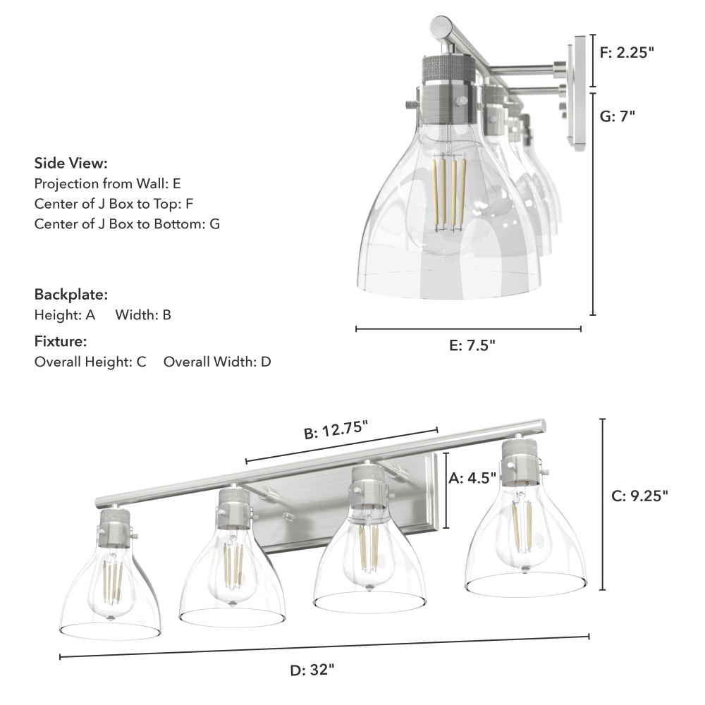 Sconce/Vanity Center of J Box to Bottom: