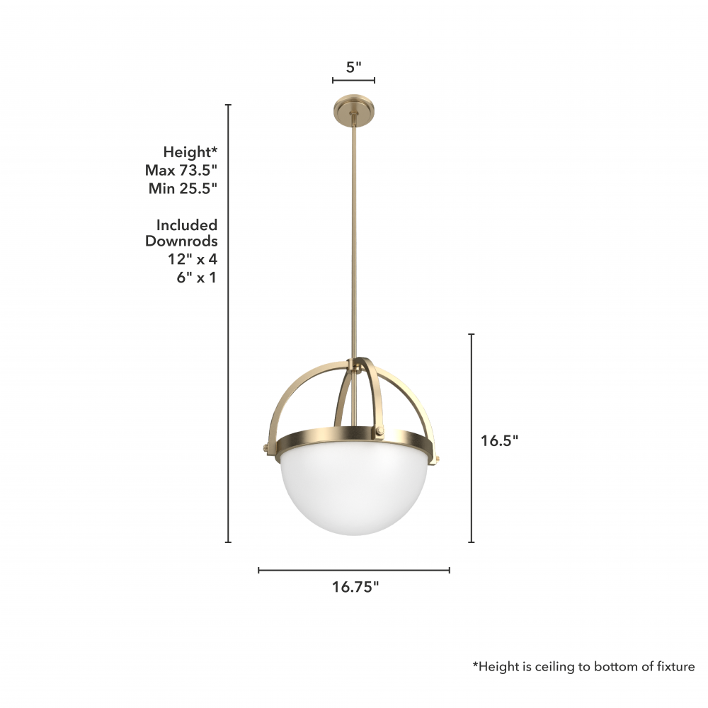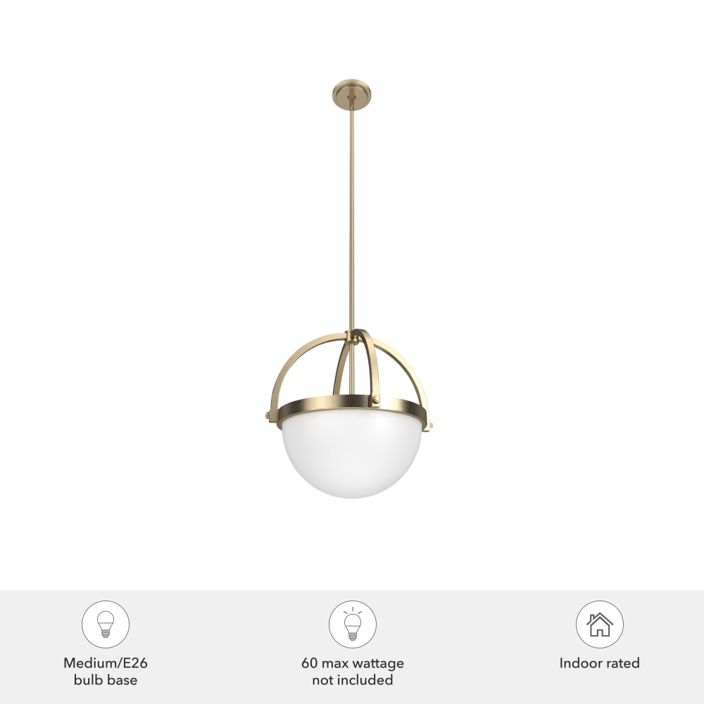 The Wedgefield pendant elevates your space in an updated Edwardian design. The cased-white glass casts a soft glow below, while the open metal orb allows light to reflect from above, reducing shadow. Above your island or over your dining table, the Wedgefield makes a statement and adds glamour to your space. Mix and match with other fixtures from this collection or from our ceiling fan designs.