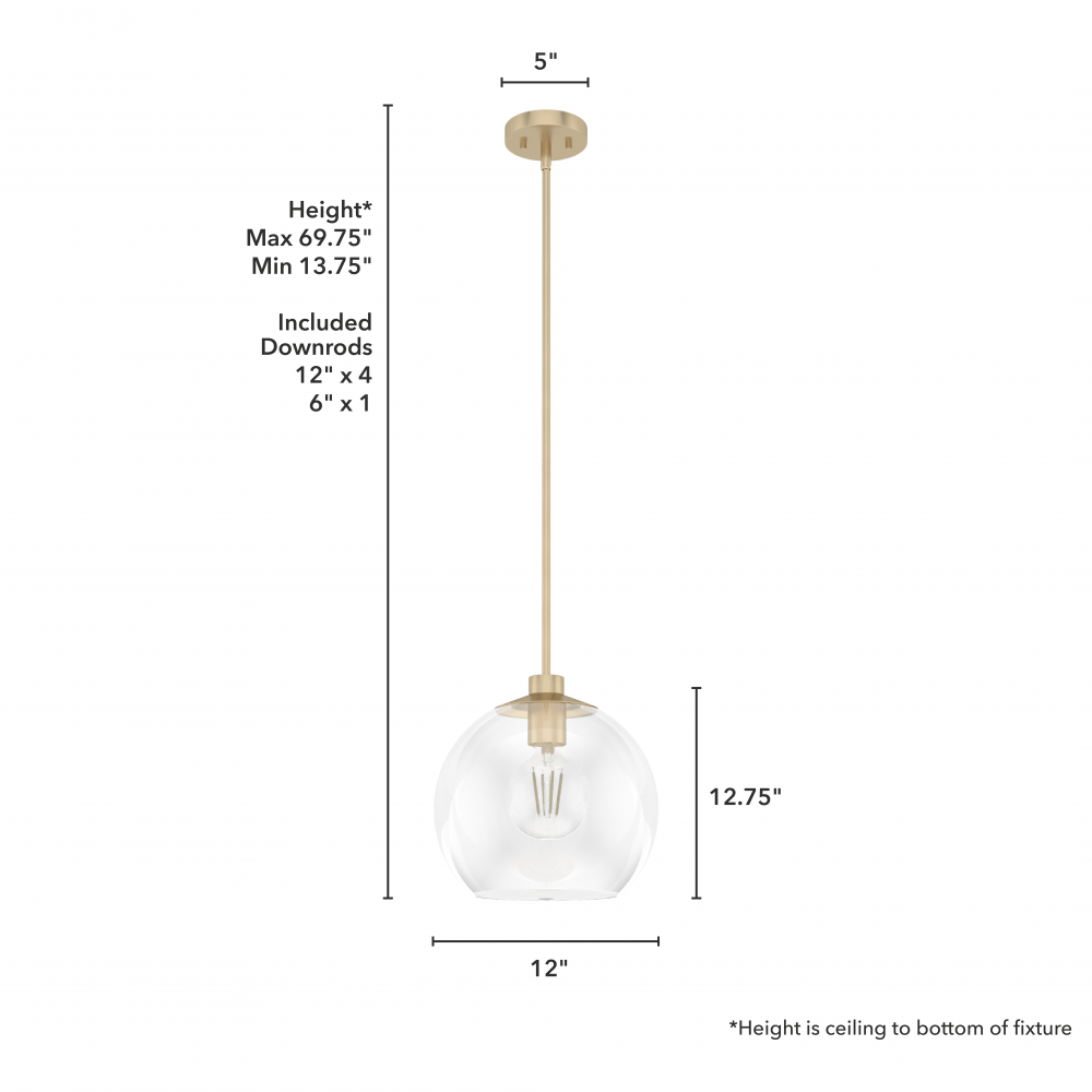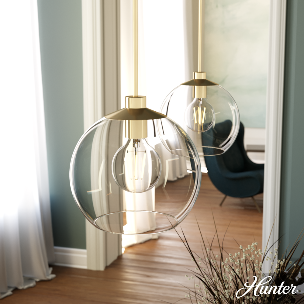 Hunter Xidane Alturas Gold with Clear Glass 1 Light Pendant Ceiling Light Fixture