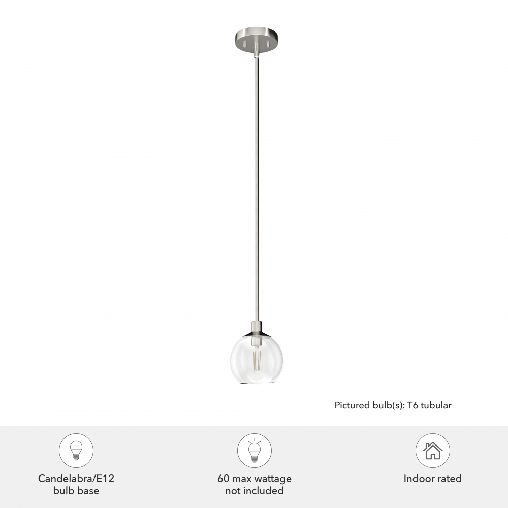 Hunter Xidane Brushed Nickel with Clear Glass 1 Light Pendant Ceiling Light Fixture