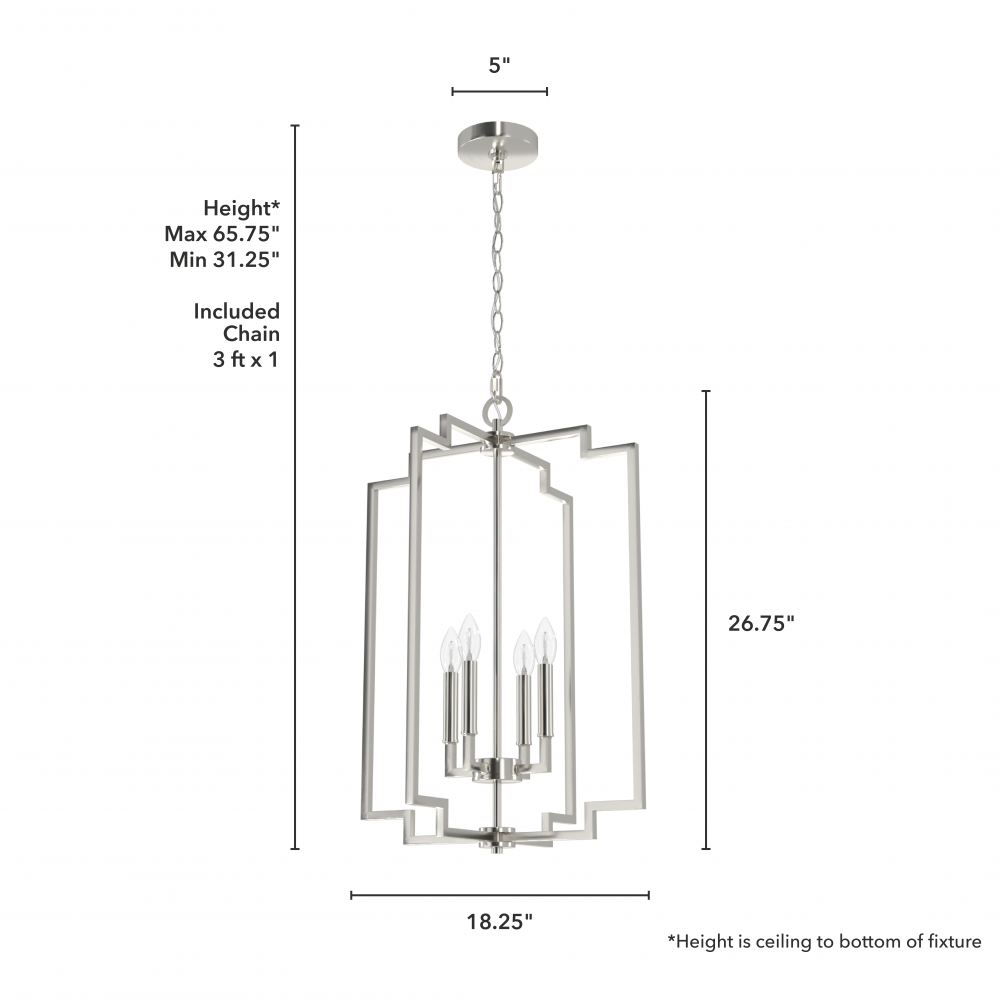 CUSTOMIZABLE HANGING OPTIONS: With the minimum required chain, the hanging length is 42.75 inches. When using all of the included chain, the maximum hanging length is 96.5 inches.
