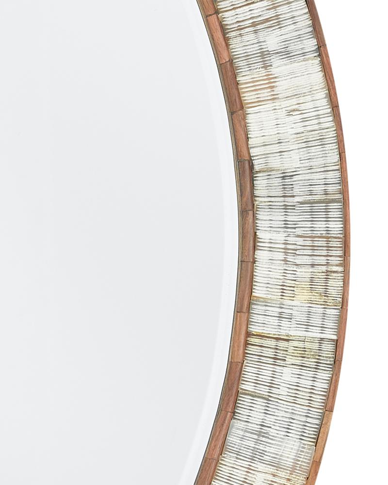 A composition of natural horn, our Hyson Round Mirror spotlights the detailing required to make natural horn appear seamless. Outlined in Sheesham wood, this natural horn decorative mirror is one of two in this family, the other version a square decorative mirror.