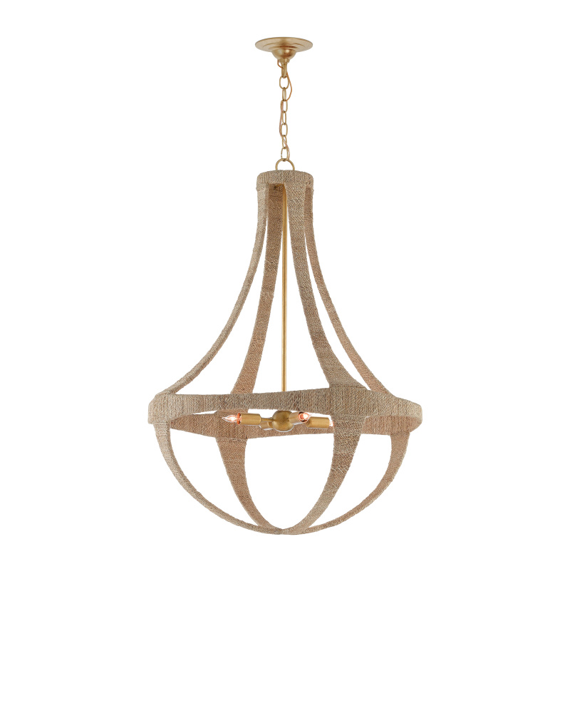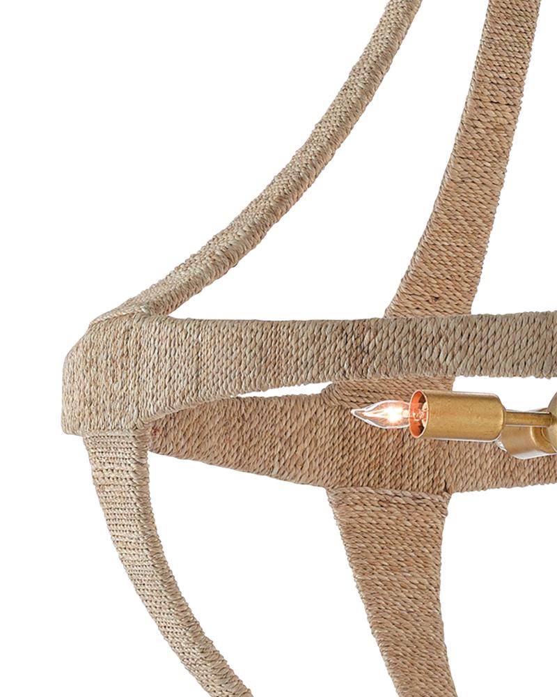 What can you do if you are relegated to the indoors when you had rather be sunning yourself on a beach in the Mediterranean? Hang our Ibiza Chandelier overhead and you’ll bring the panache of this storied island right into the room. Wrapped in Abaca rope, this fixture shows the skill of our talented artisans, as it takes great dexterity and the utmost in patience to cover a frame so seamlessly. We’ve treated the hardware to a dark contemporary gold leaf finish to echo the warm tones in the rope.