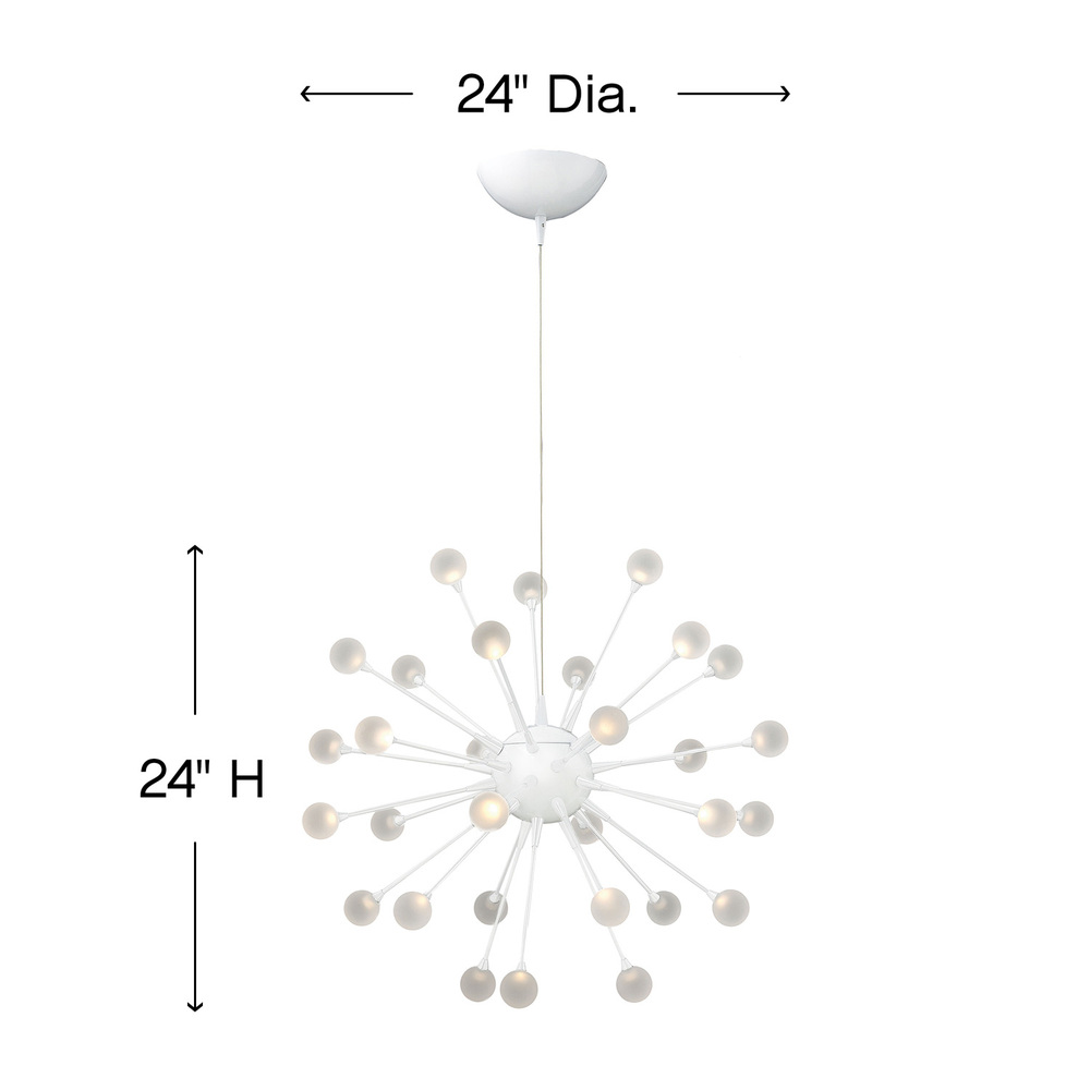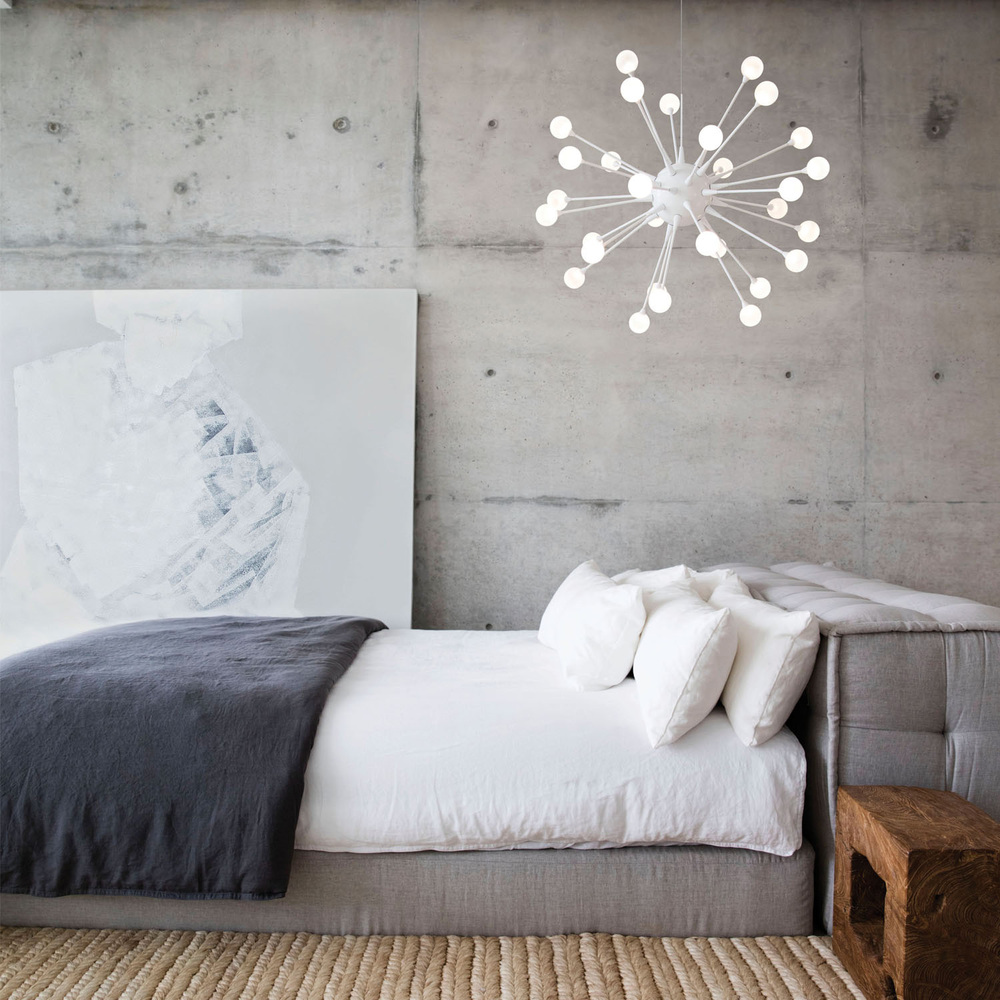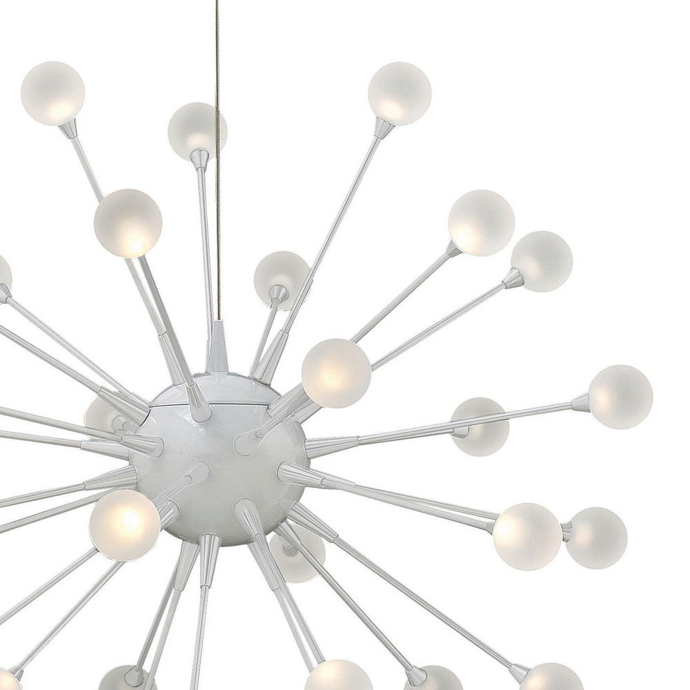 Impulse is a dynamic LED design with a striking contemporary shape. Petite stems radiate from the spherical body while miniature acrylic ornaments of light glow at its tips. An array of chic finishes in Polished Chrome; Polished Gold, Black Chrome, and Cloud (White) intensifies its stunning effect.