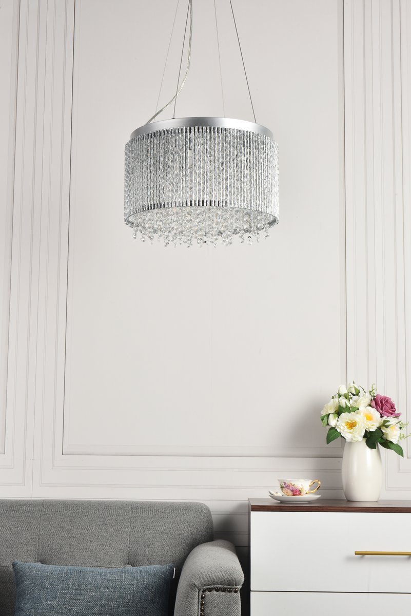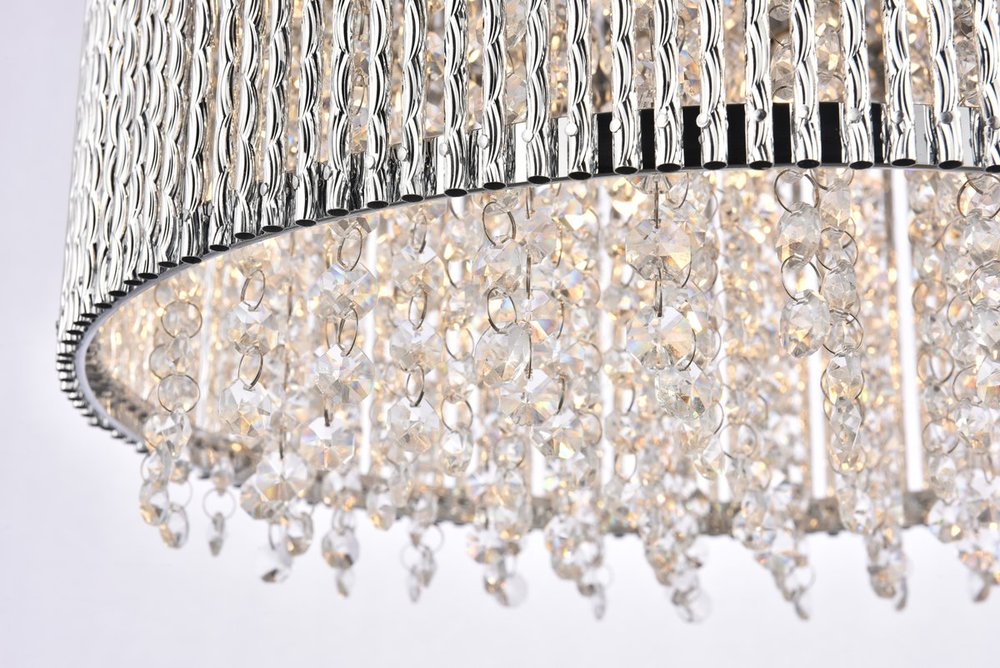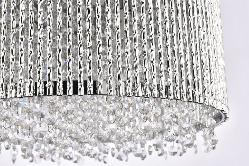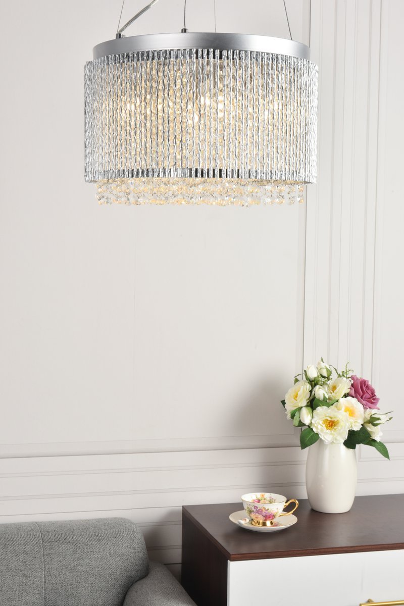 This ring of celestial light will leave an impression of dynamic resonance in your bedroom, dining room, or entryway with the Influx collection of hanging fixtures. Multifaceted royal-cut clear crystal beads dance within a glistening chrome silhouette of metallic twists. Be swept you off your feet by this contemporary lighting fixture that inspires a glow of brilliant, breathtaking wonder.