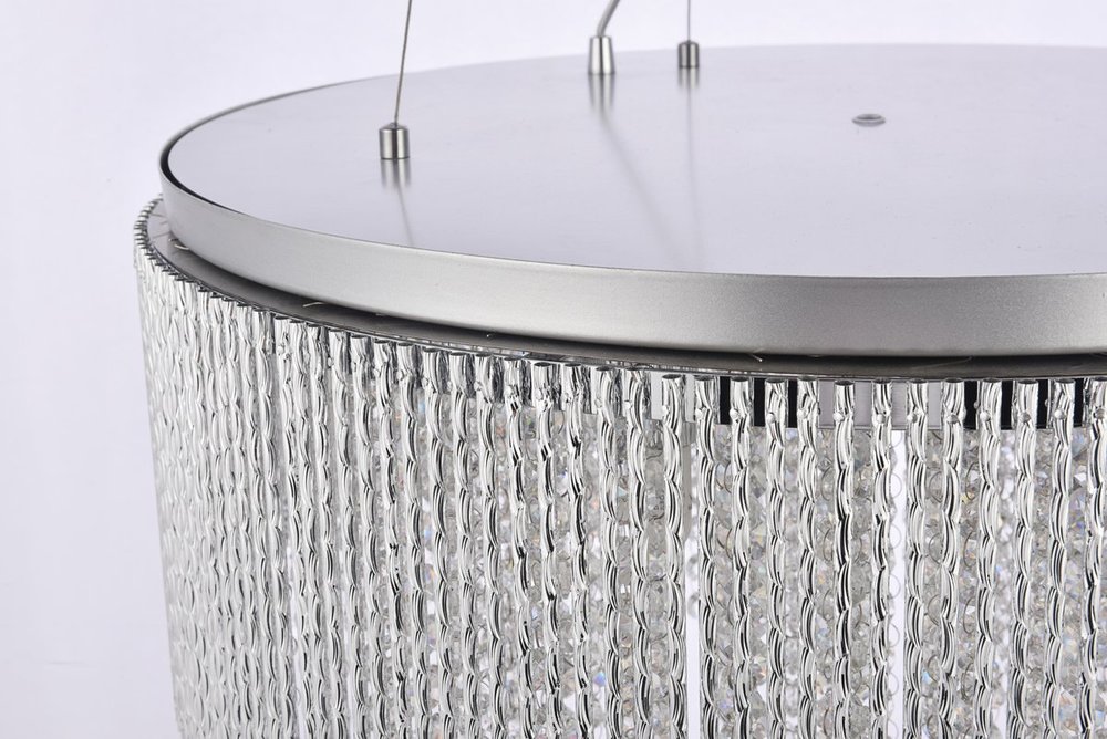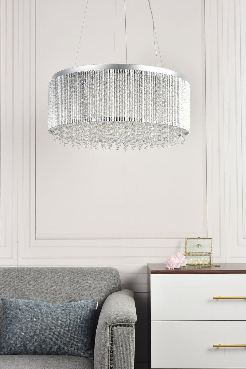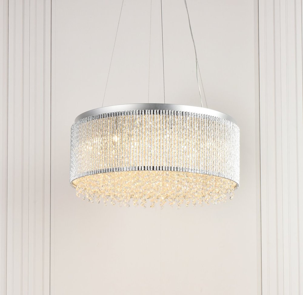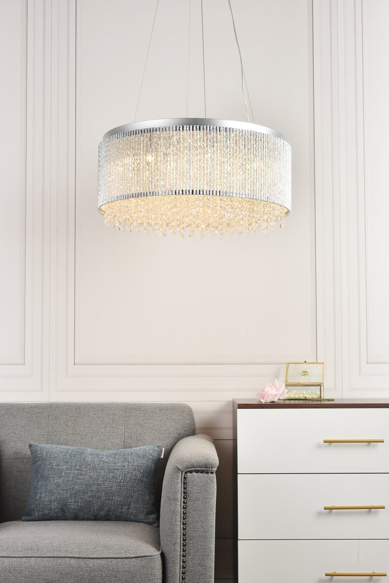 This ring of celestial light will leave an impression of dynamic resonance in your bedroom, dining room, or entryway with the Influx collection of hanging fixtures. Multifaceted royal-cut clear crystal beads dance within a glistening chrome silhouette of metallic twists. Be swept you off your feet by this contemporary lighting fixture that inspires a glow of brilliant, breathtaking wonder.