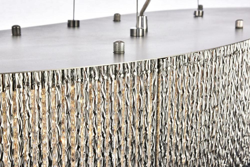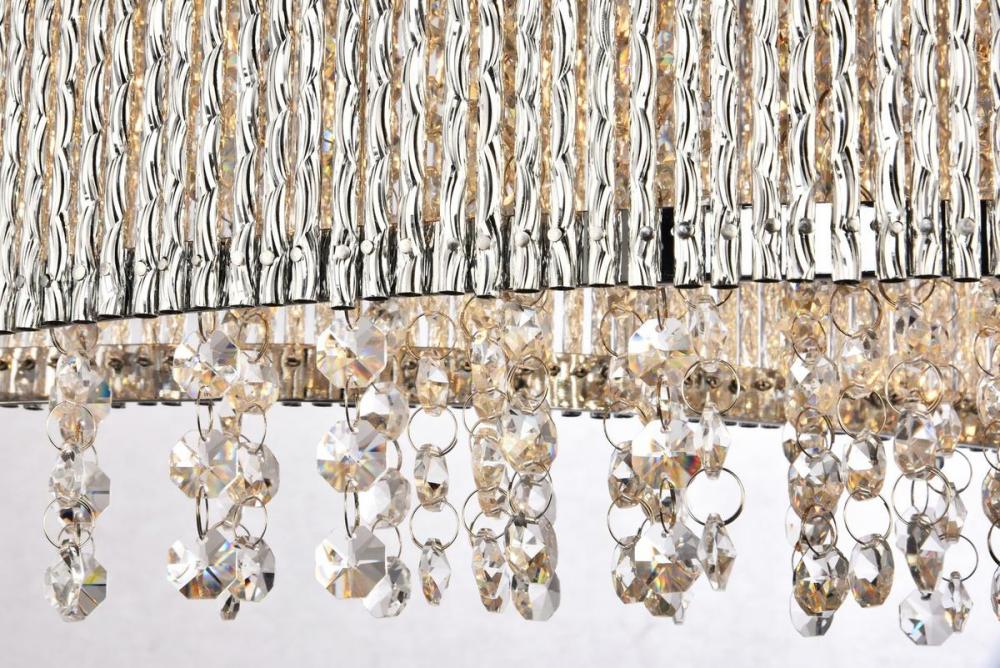 Waves of glimmering light will leave an impression of dynamic motion in your bedroom, dining room, or entryway with the Influx collection of hanging fixtures. Multifaceted royal-cut clear crystal beads dance within a glistening chrome silhouette of metallic twists. Be swept you off your feet by this contemporary lighting fixture that inspires a tide of brilliant breathtaking wonder.