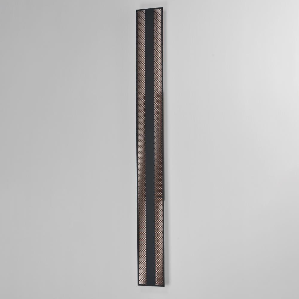 An Antique Copper grid constructed of 304 Grade Stainless Steel is framed along an integrated LED light source. The woven pattern of this grill is both elegant and adds an elegant element to the minimal design. Backlit along its sides the LED light highlig