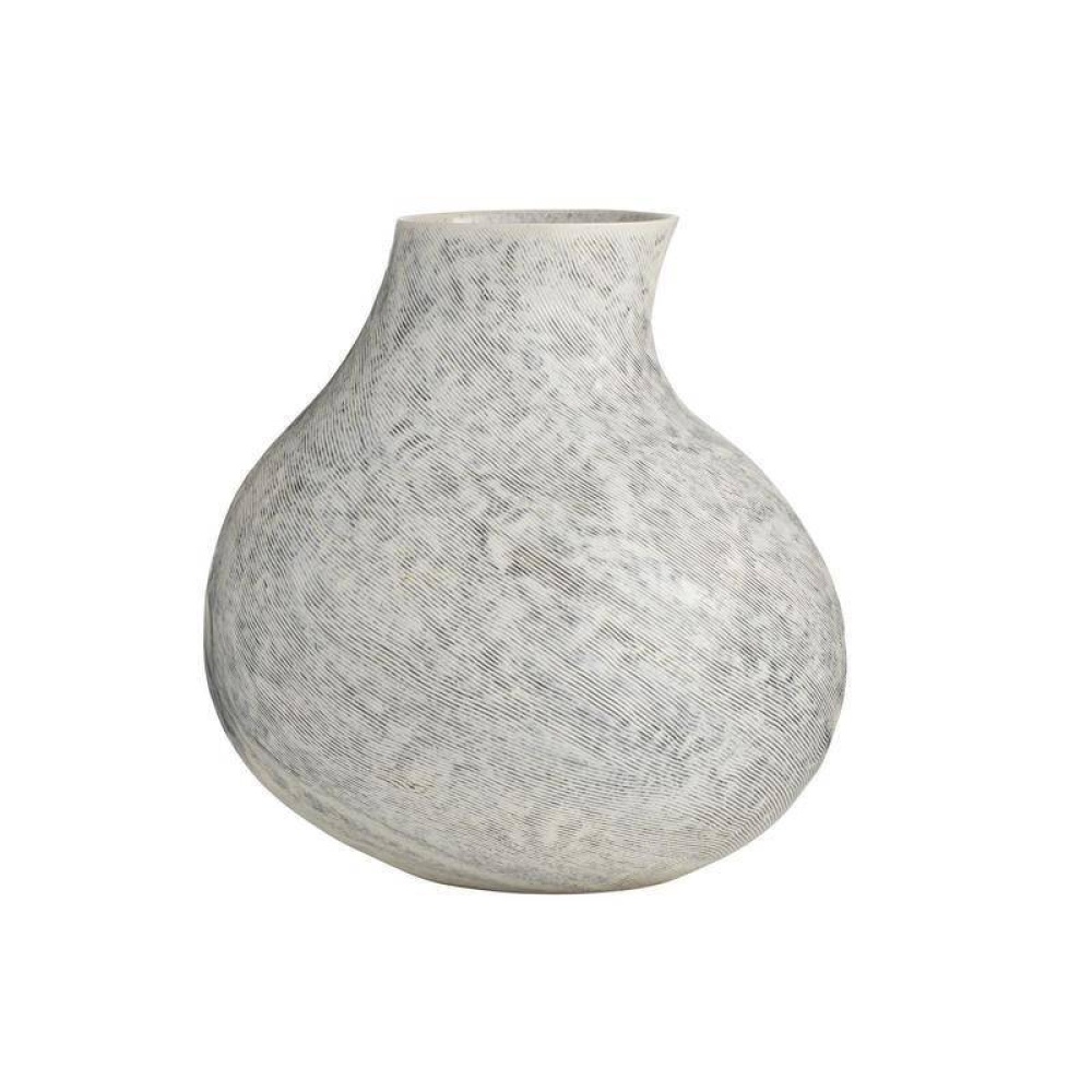 The curves of a tulip bulb elevate our free-form, large-scale vase of the finest porcelain. Finished in ice-reactive glaze, this contemporary artifact has an appealing, hand-thrown texture and made to be watertight. Finish will vary.